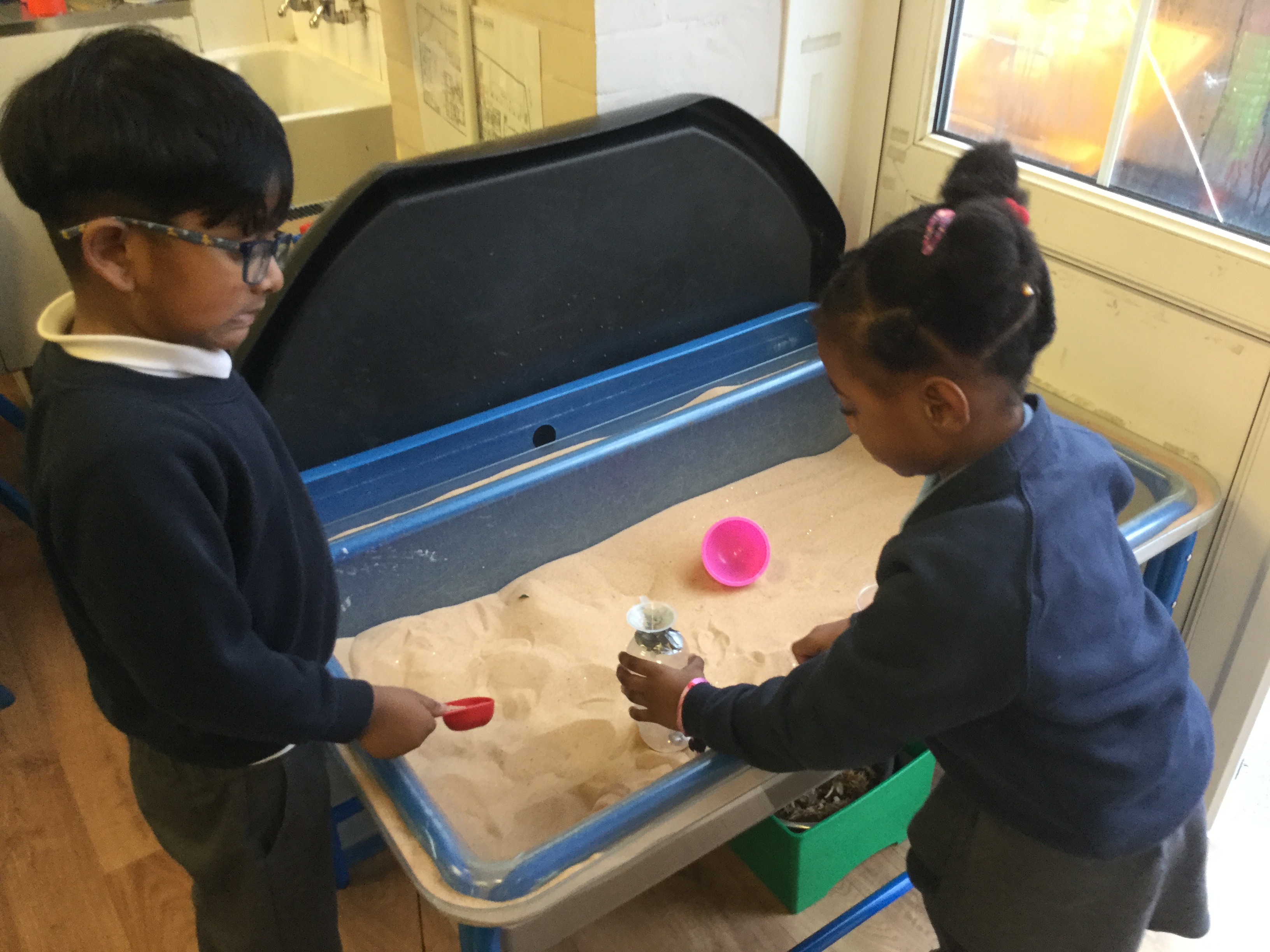 Today in 1S we have been making rain gauges. We used plastic bottles, funnels, duct tape, sand and water.