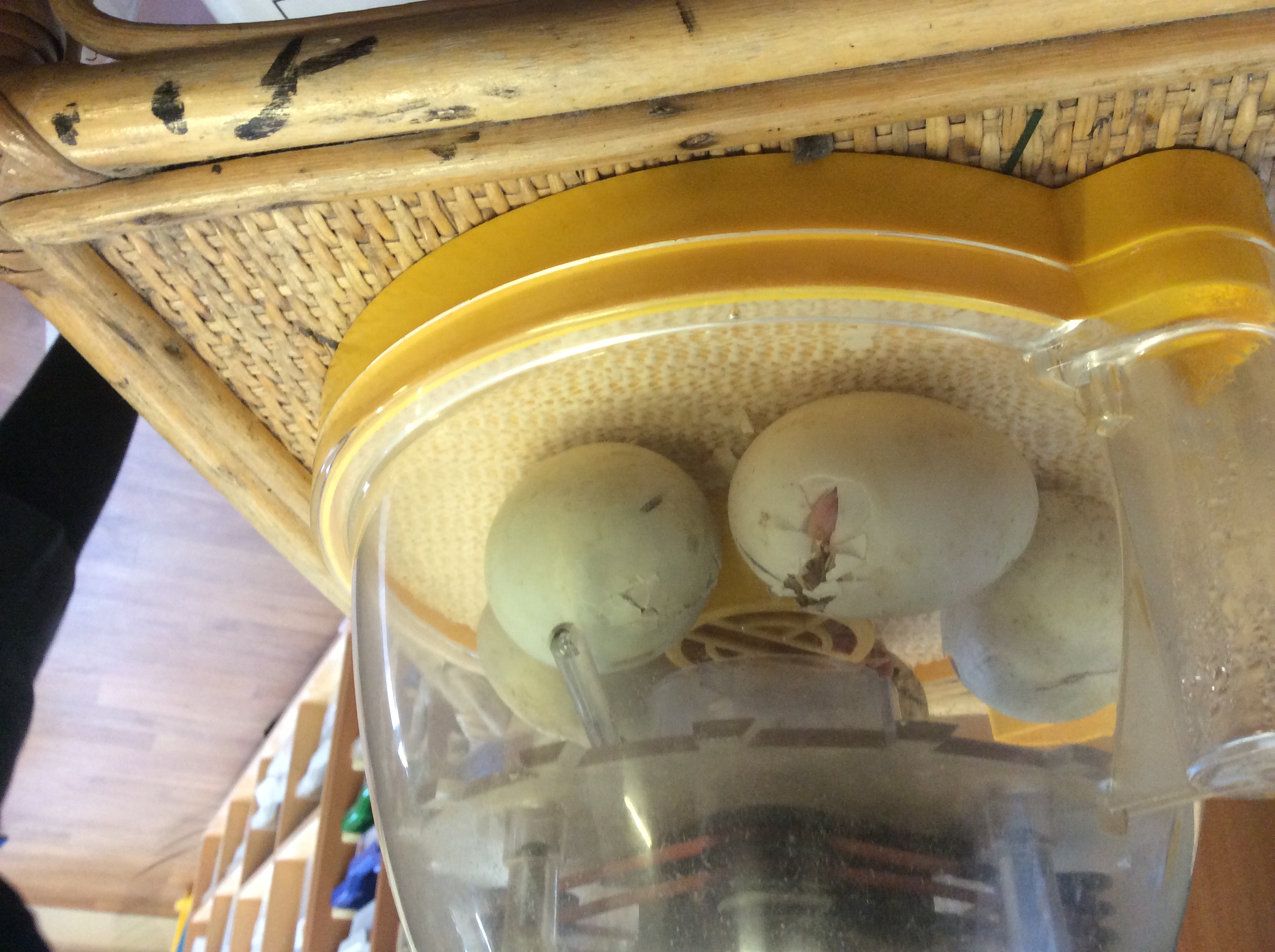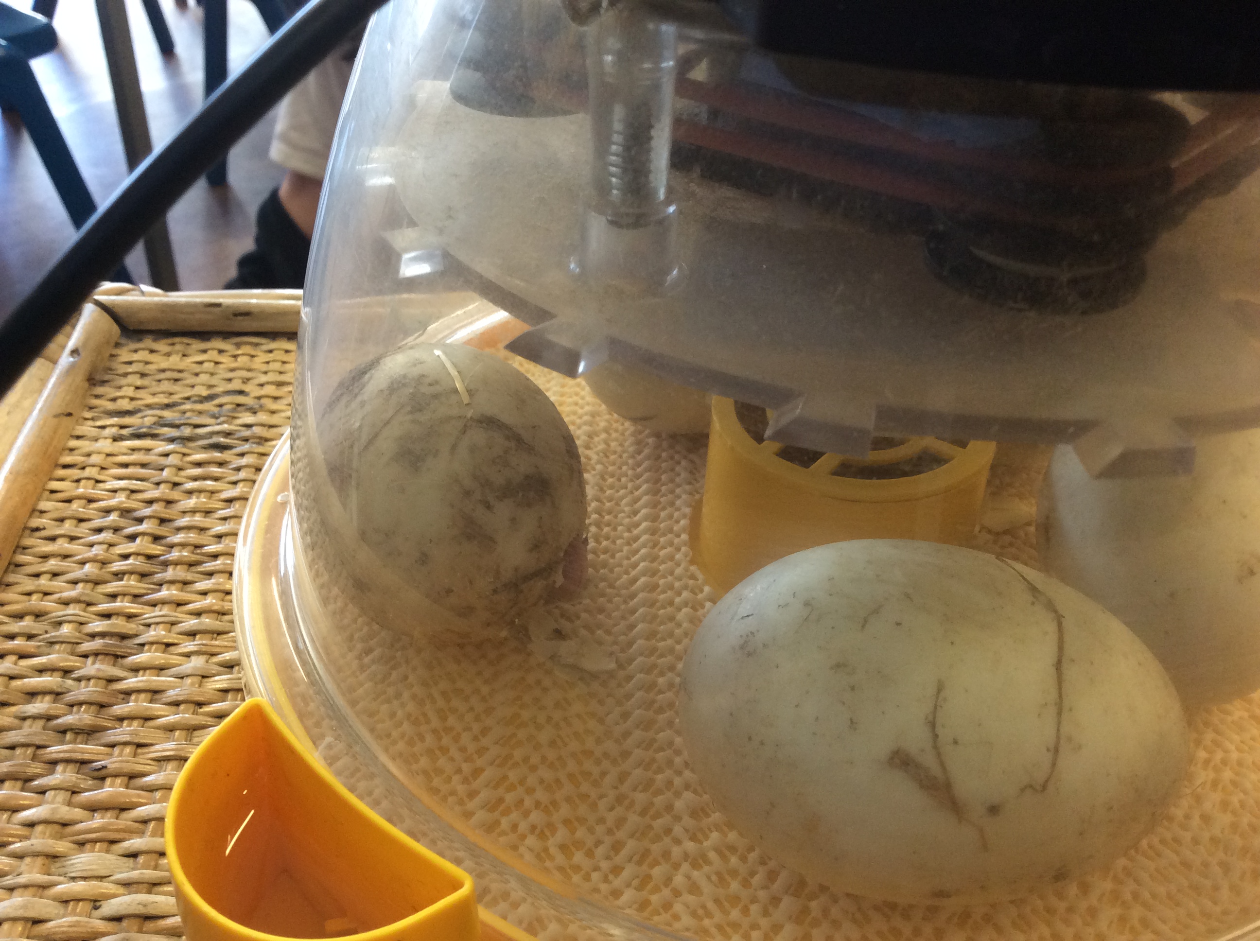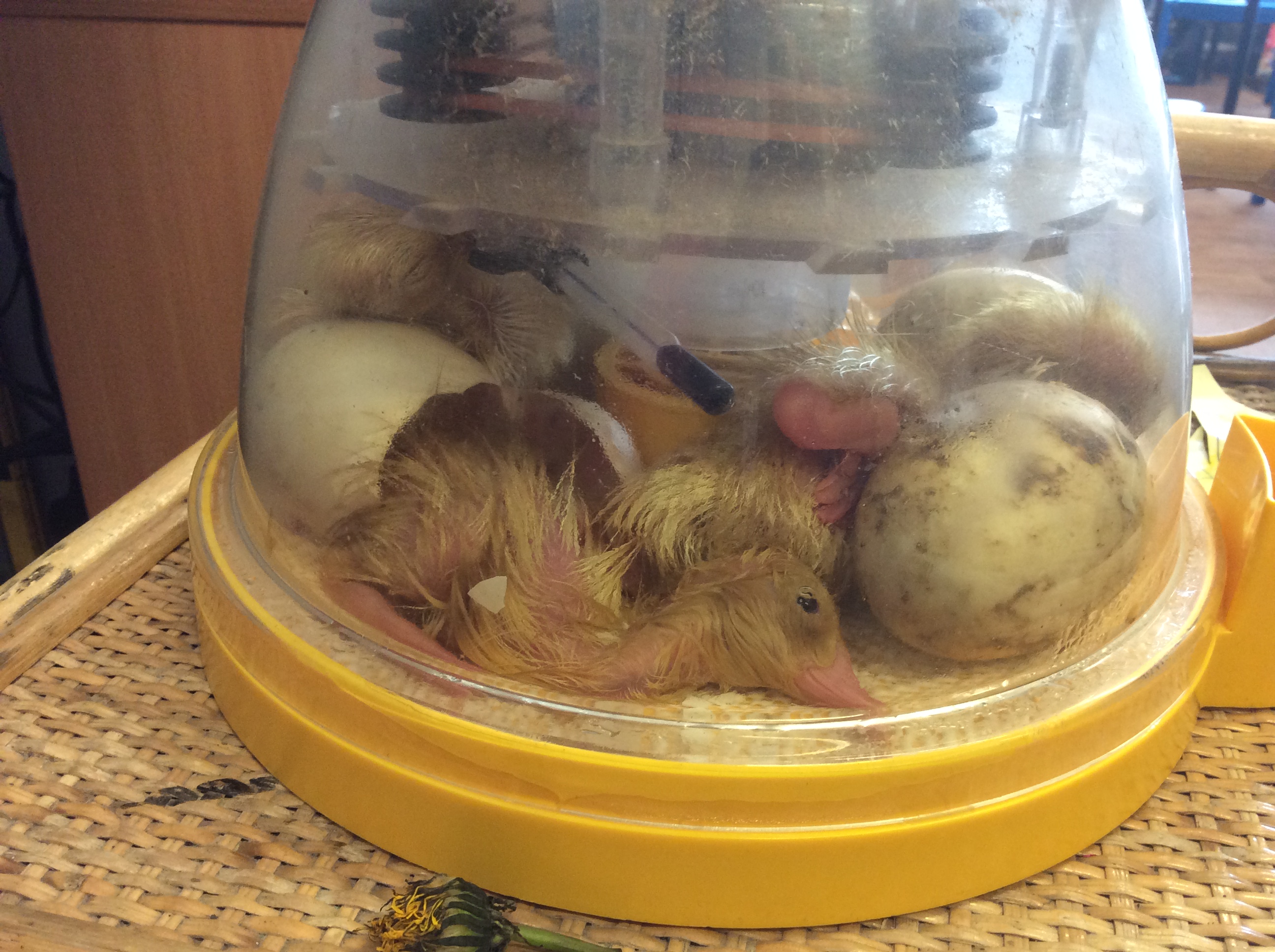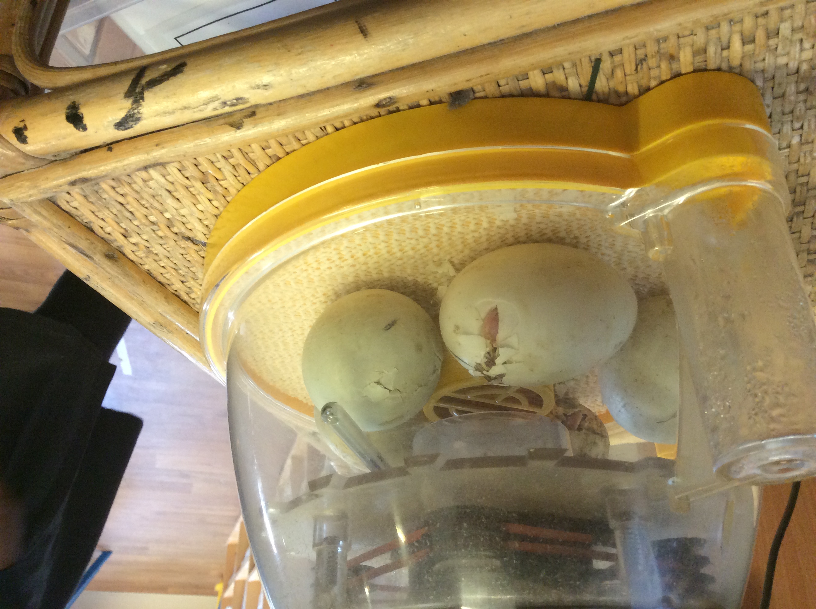 Then after playtime, a 3rd duckling hatched! We have been so lucky to see so much hatching. The other 2 eggs are moving and cheeping so hopefully they will be joining the first 3 soon.
