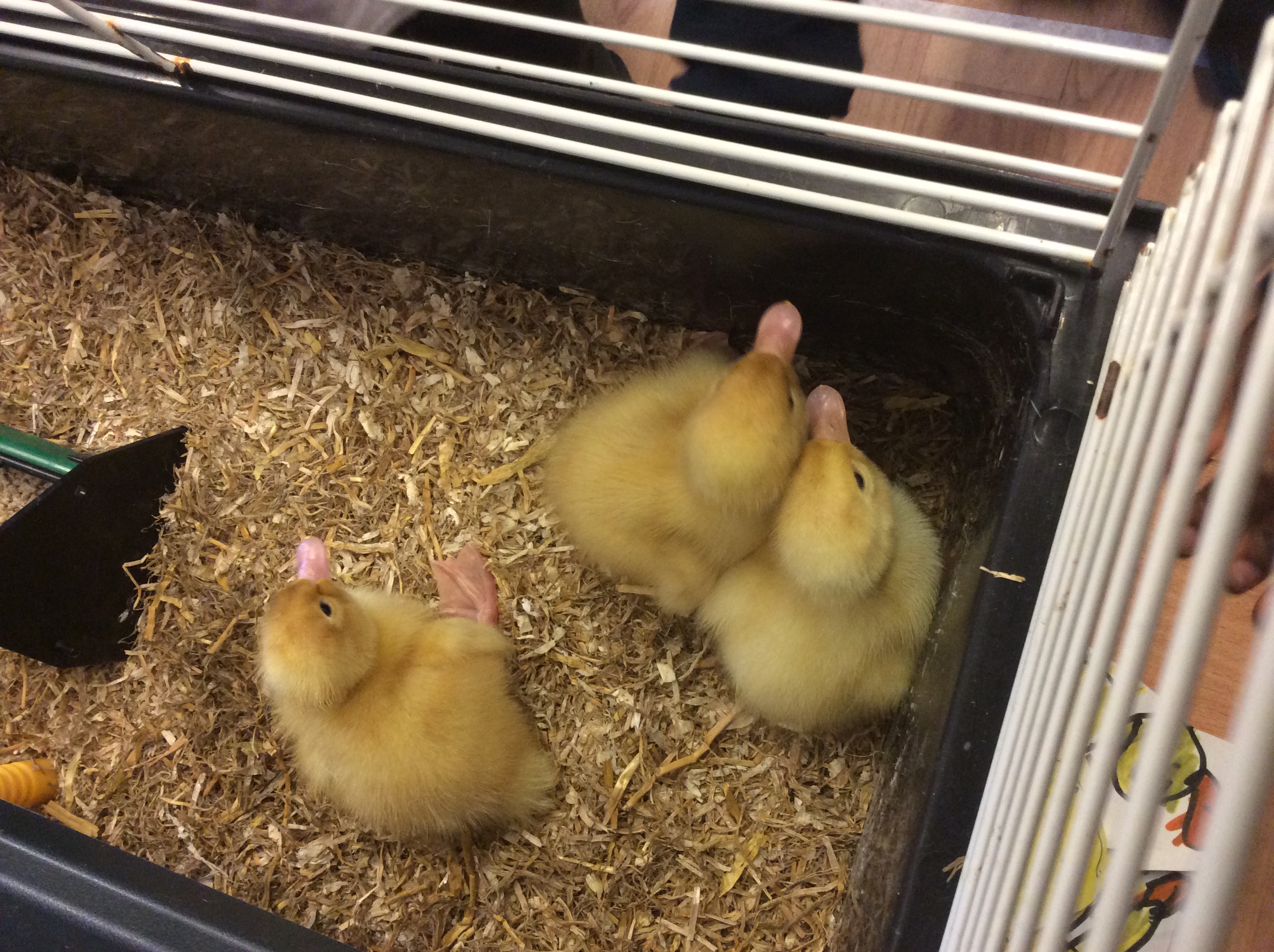 4 of our 5 ducklings are happy in the brooder box! They have got a bit more space to run around and are exploring their water and food.