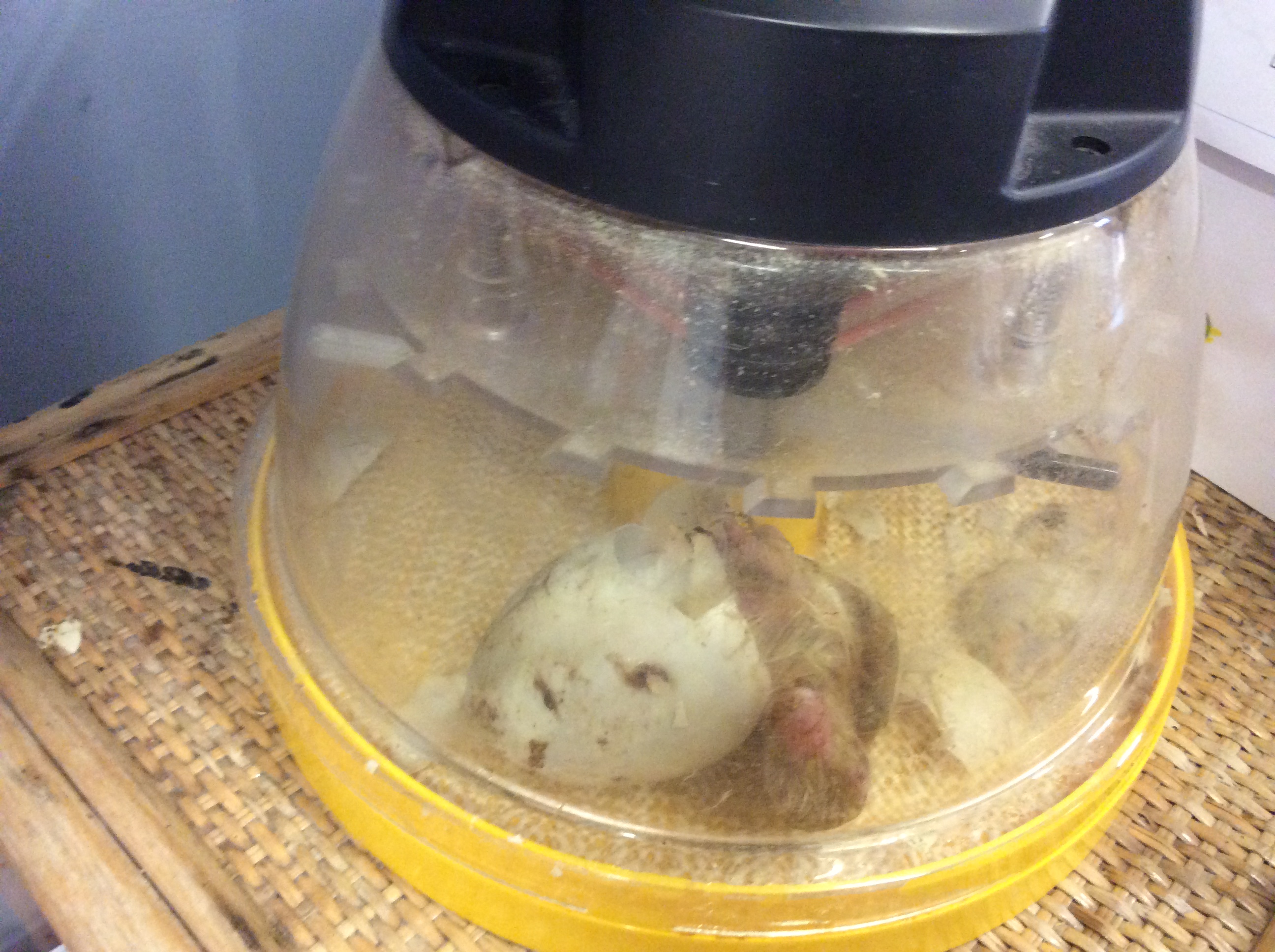 Our 5th duckling hatched this morning and is fluffing up in the incubator. When it is dry and fluffed up, it will join its friends in the brooder box.