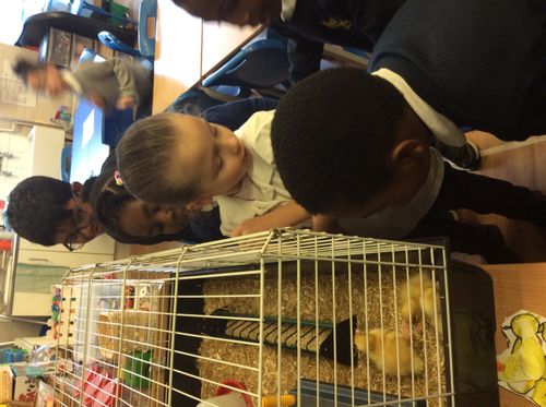This afternoon we took it in turns to gently stroke them! Next week we will be holding them and are very excited.