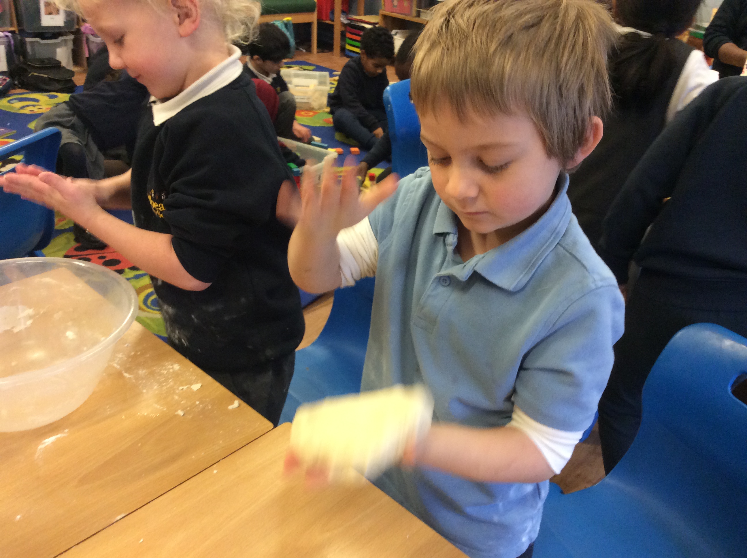 Then we made our own fossils to go in a museum. This morning we talked about the purpose of a museum and wrote some rules. This afternoon we made our own fossils out of salt dough. We followed the recipe as a group and then created ammonites, other fossils and dinosaur bones! We will be displaying them in a class museum.