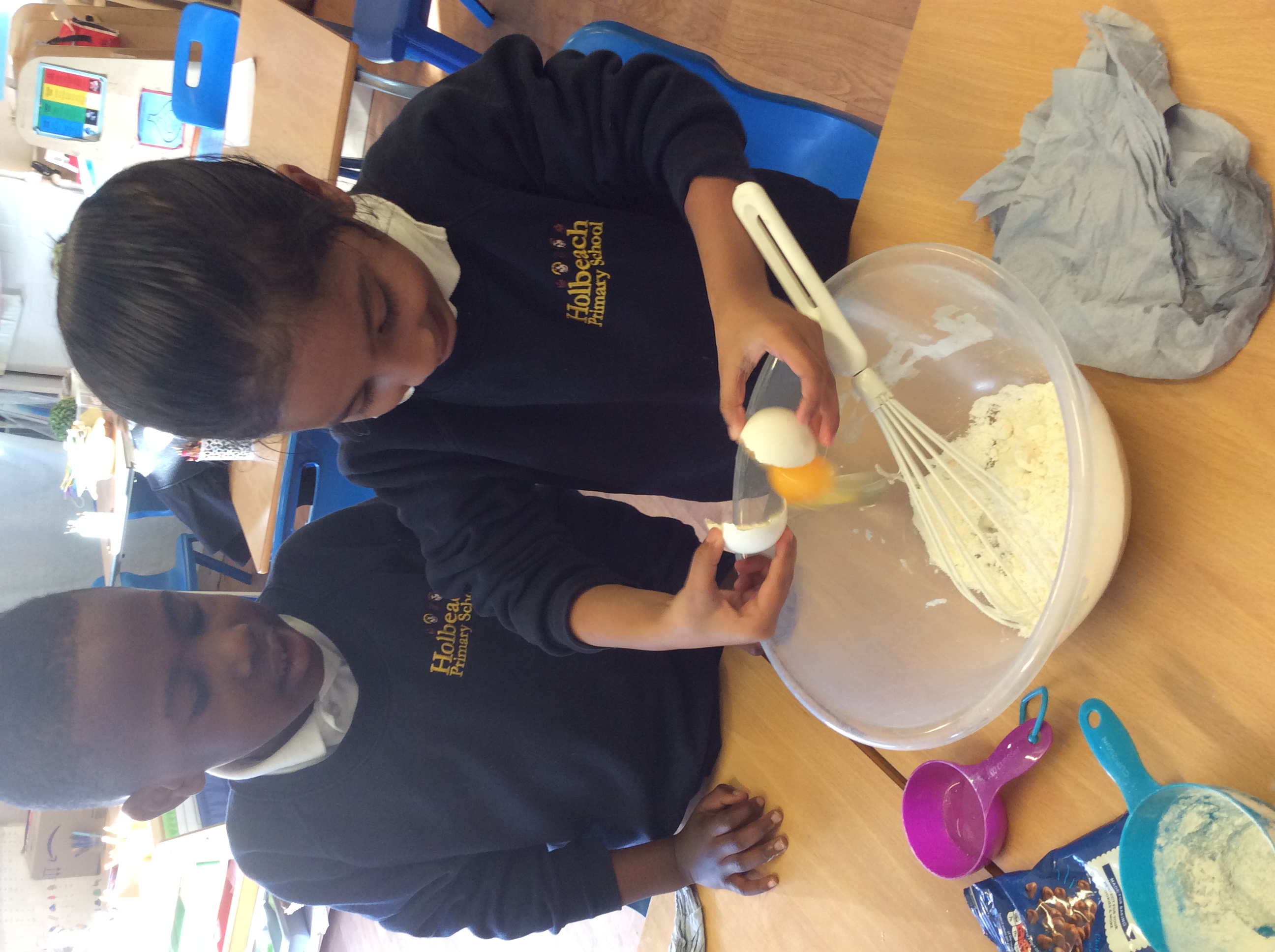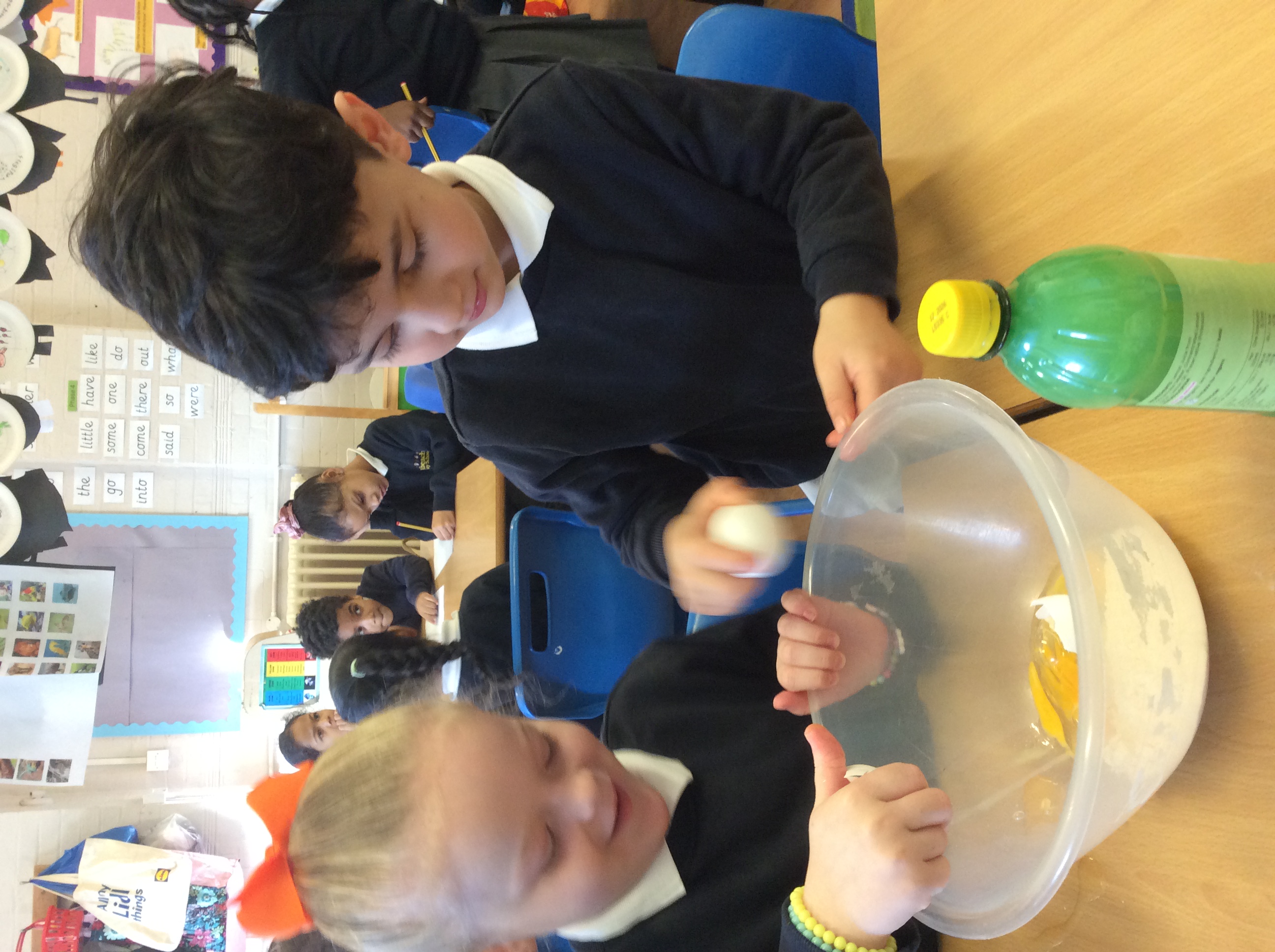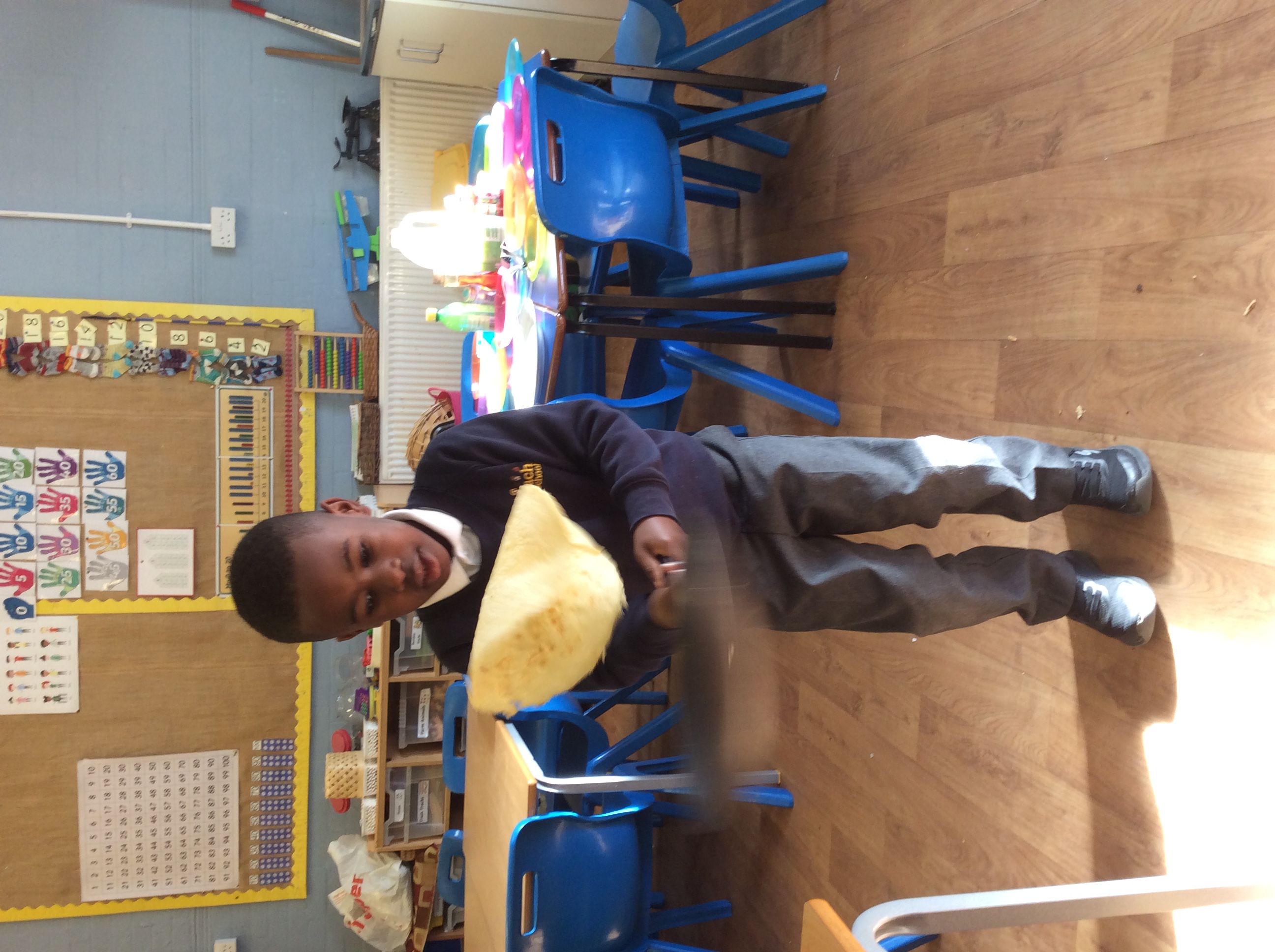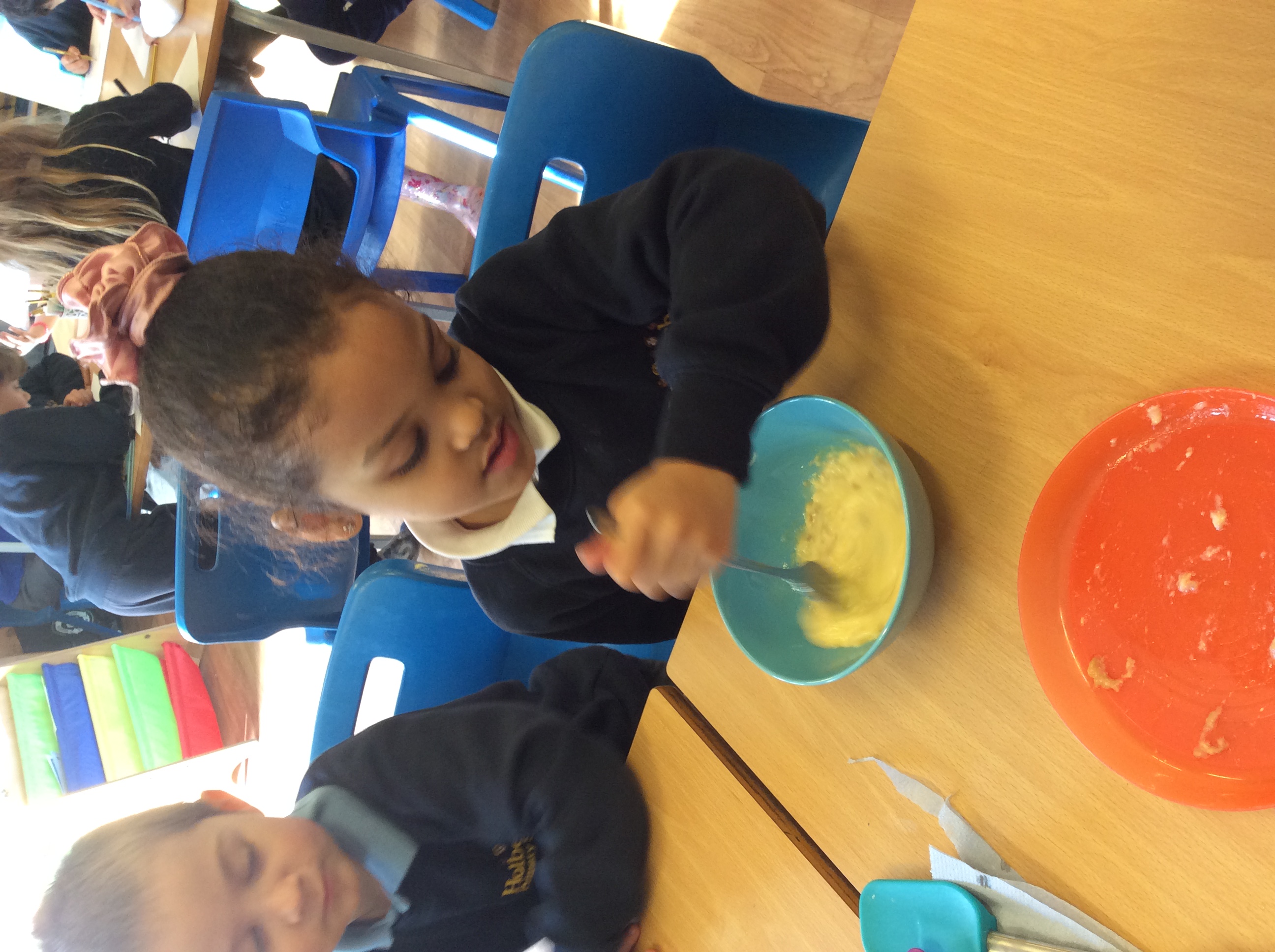 As our topic this term is 'Eggs let's get cracking' we have been looking at recipes that contain eggs. Yesterday, we made pancakes! We measured all the ingredients carefully to make a batter. Then an adult cooked the pancakes. We added toppings and enjoyed them!