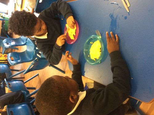 Today in 1S we made our own omelettes. We have been planning and writing lists of ingredients this week. Today we chopped, grated and cracked the ingredients in our groups. Then we each added our own ingredients to the pan to make omelettes.