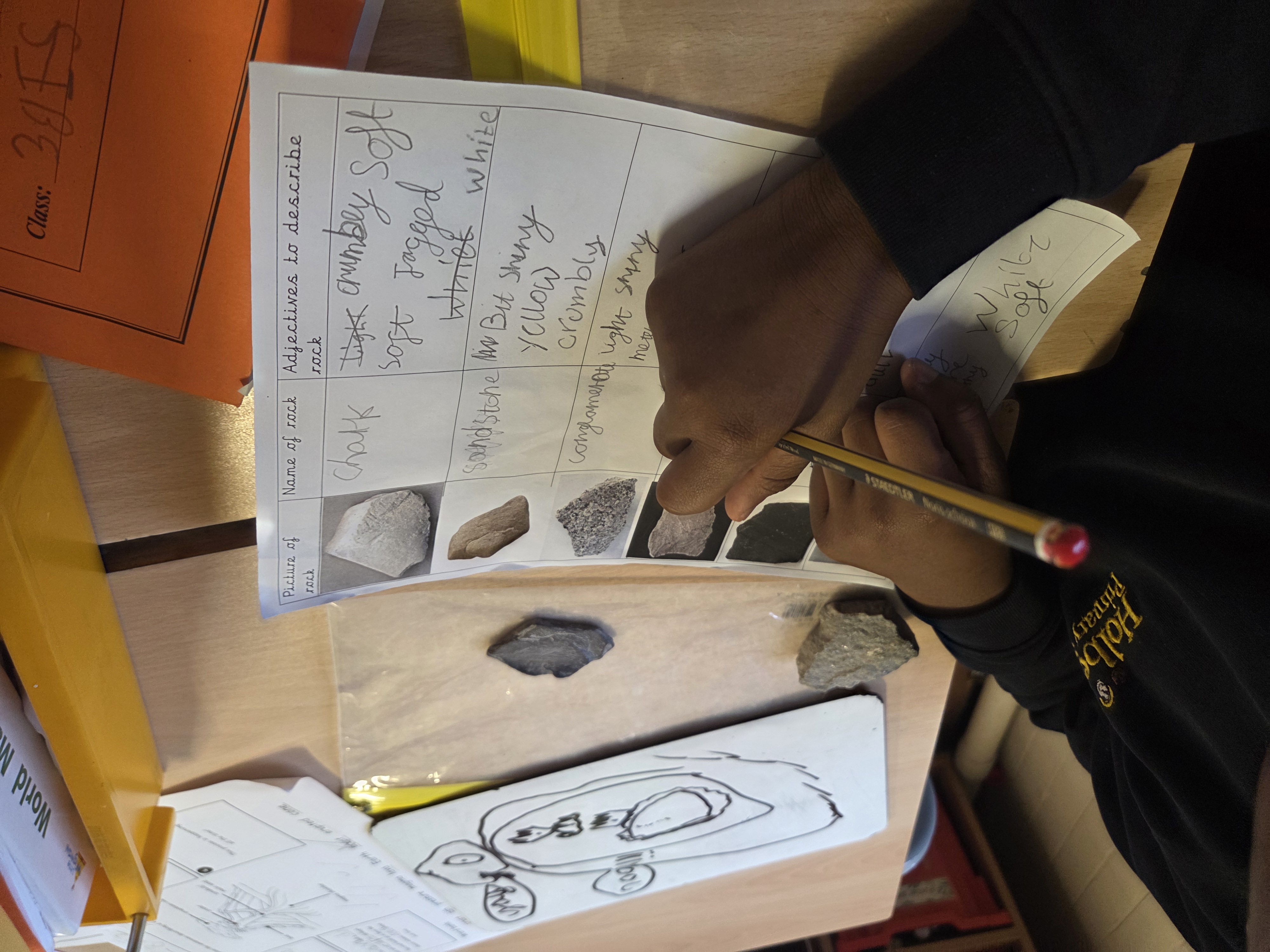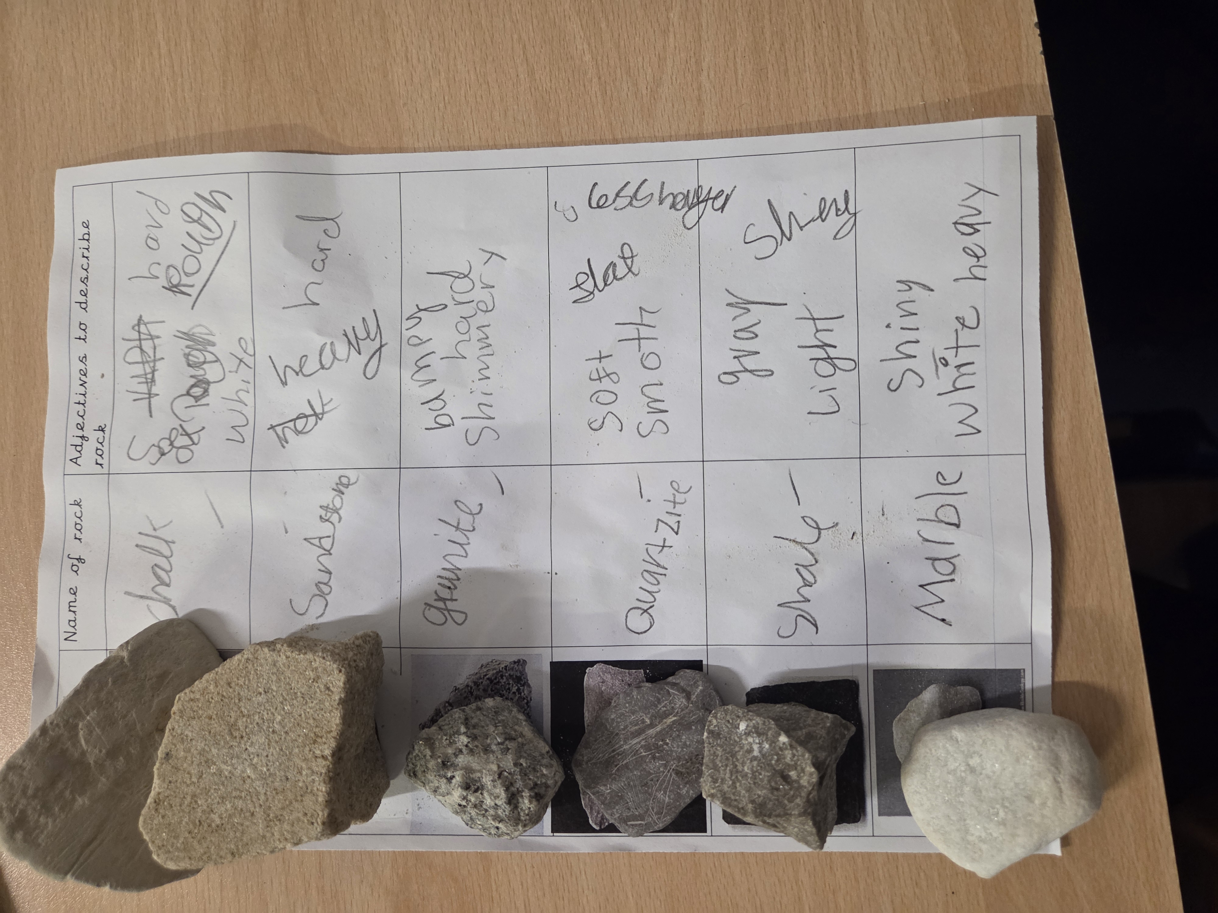 We looked at the features of different rocks in order to identify and classify them. We had to think about the hardness of the rock, its texture, its colour and the grains inside.