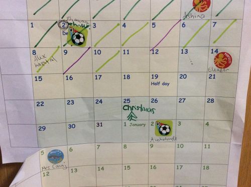 Pebble class continues our big countdown to Christmas using paper chains - removing one link each day as we see ourselves creeping closer and closer to Christmas day! We used green paper for school days and red for weekends and holidays. We also use our ten frame countdown and crossing off days on our year calendar showing birthdays, weekends and holidays! The children are getting so good at recognising amounts on the ten frames and knowing one more and one fewer!
