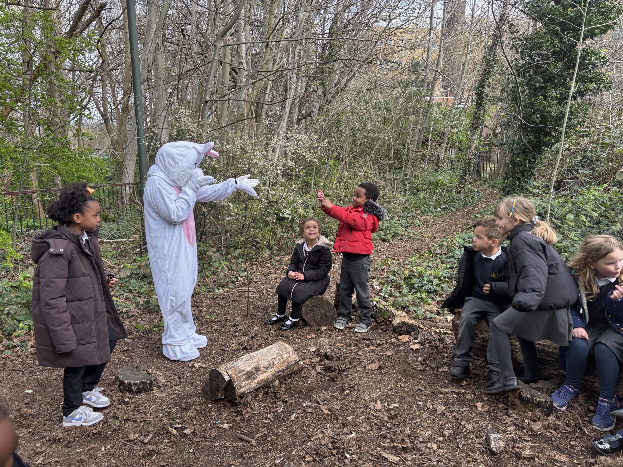 Today, 1T went to Ladywell park to meet the Easter Bunny. The children had a lovely time singing a song, answering questions and going on a mini hunt for a chocolate egg.