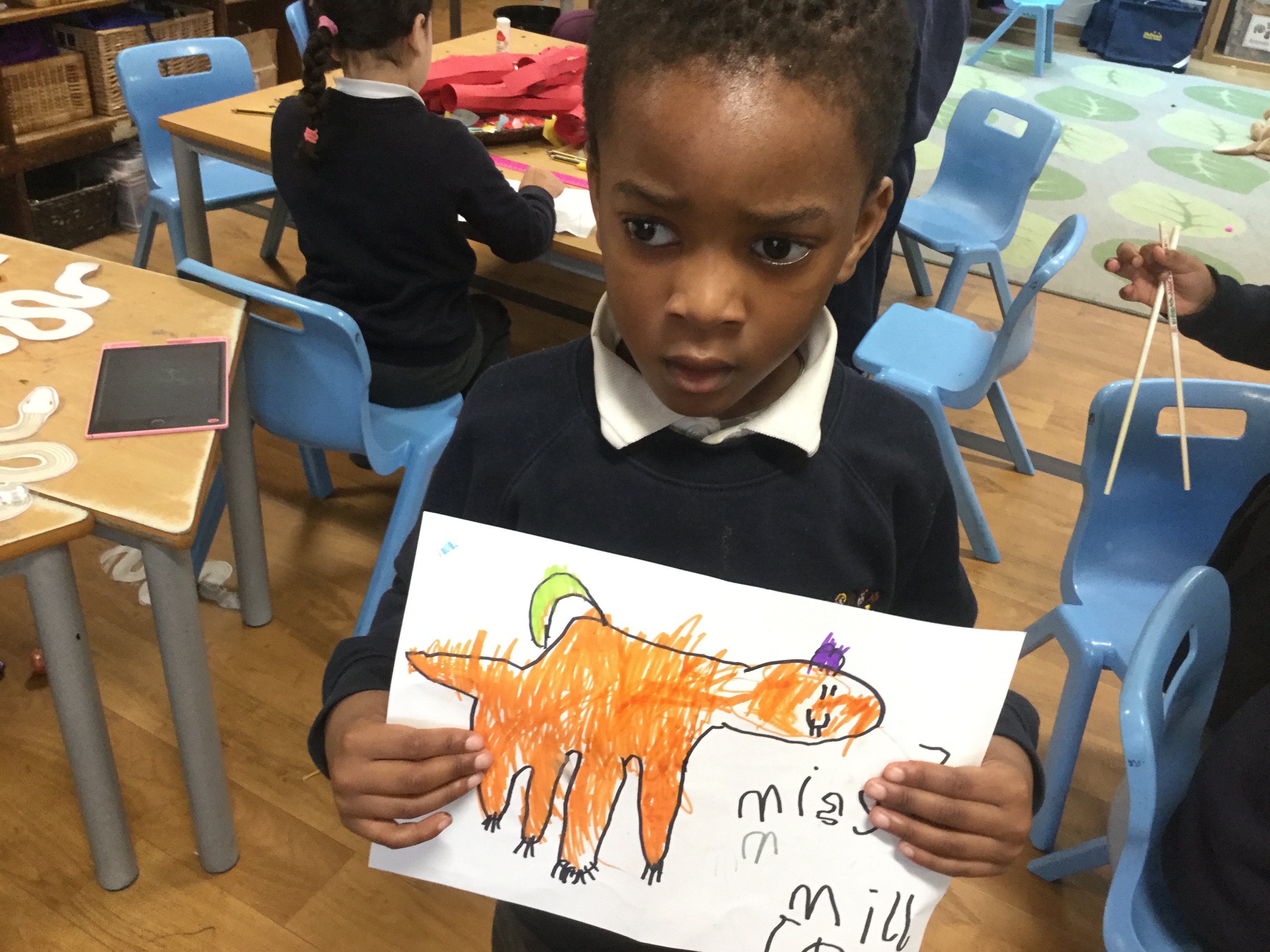 Our book of the week was The Magic Paintbrush by Julia Donaldson. The story inspired lots of imaginative thinking. We drew pictures of what we would like a magic pen to bring to life. There were some fantastic ideas including racing cars, a sweet machine and even a swimming pool in the playground. The children loved sharing their creative ideas with their friends.