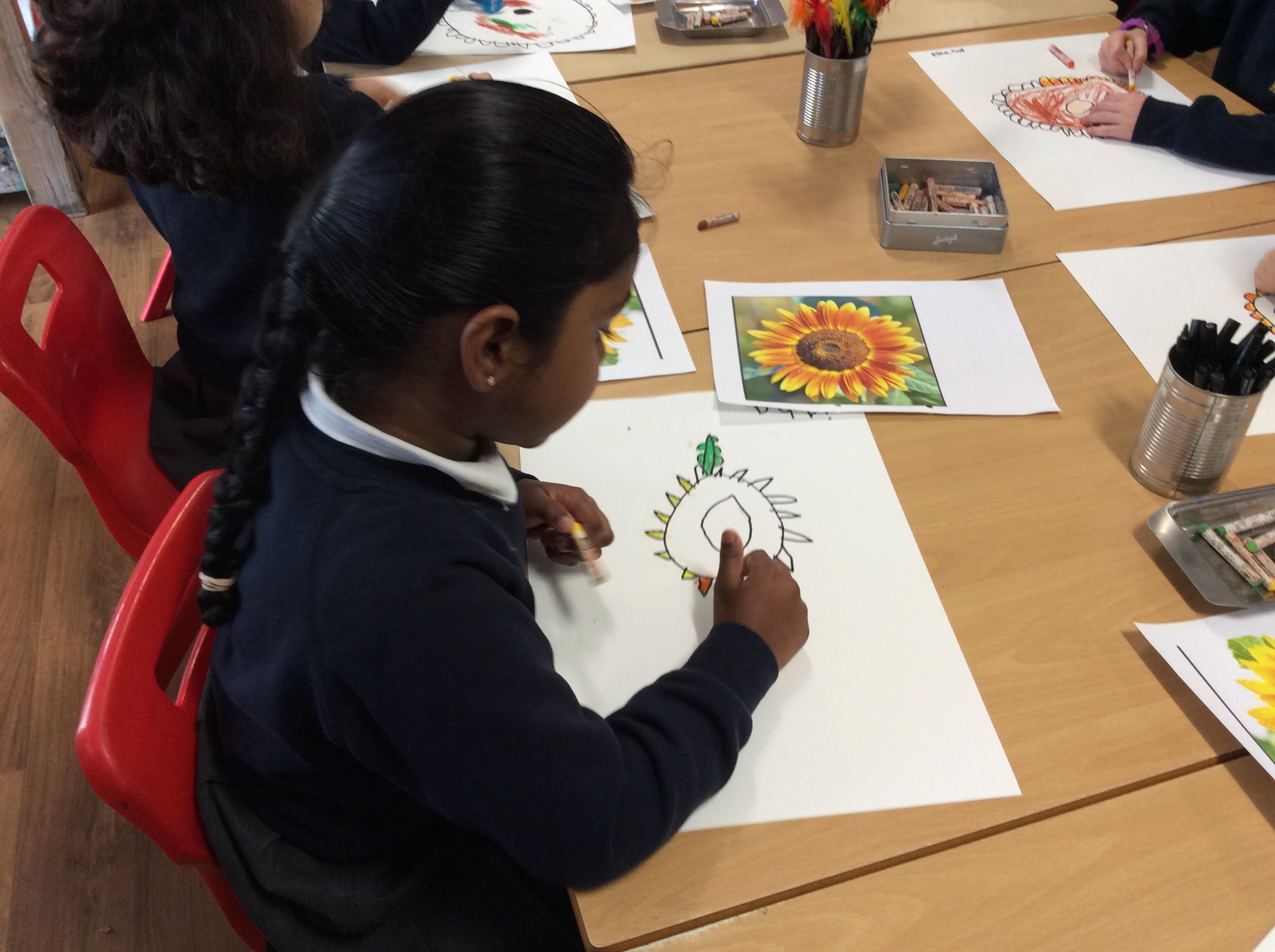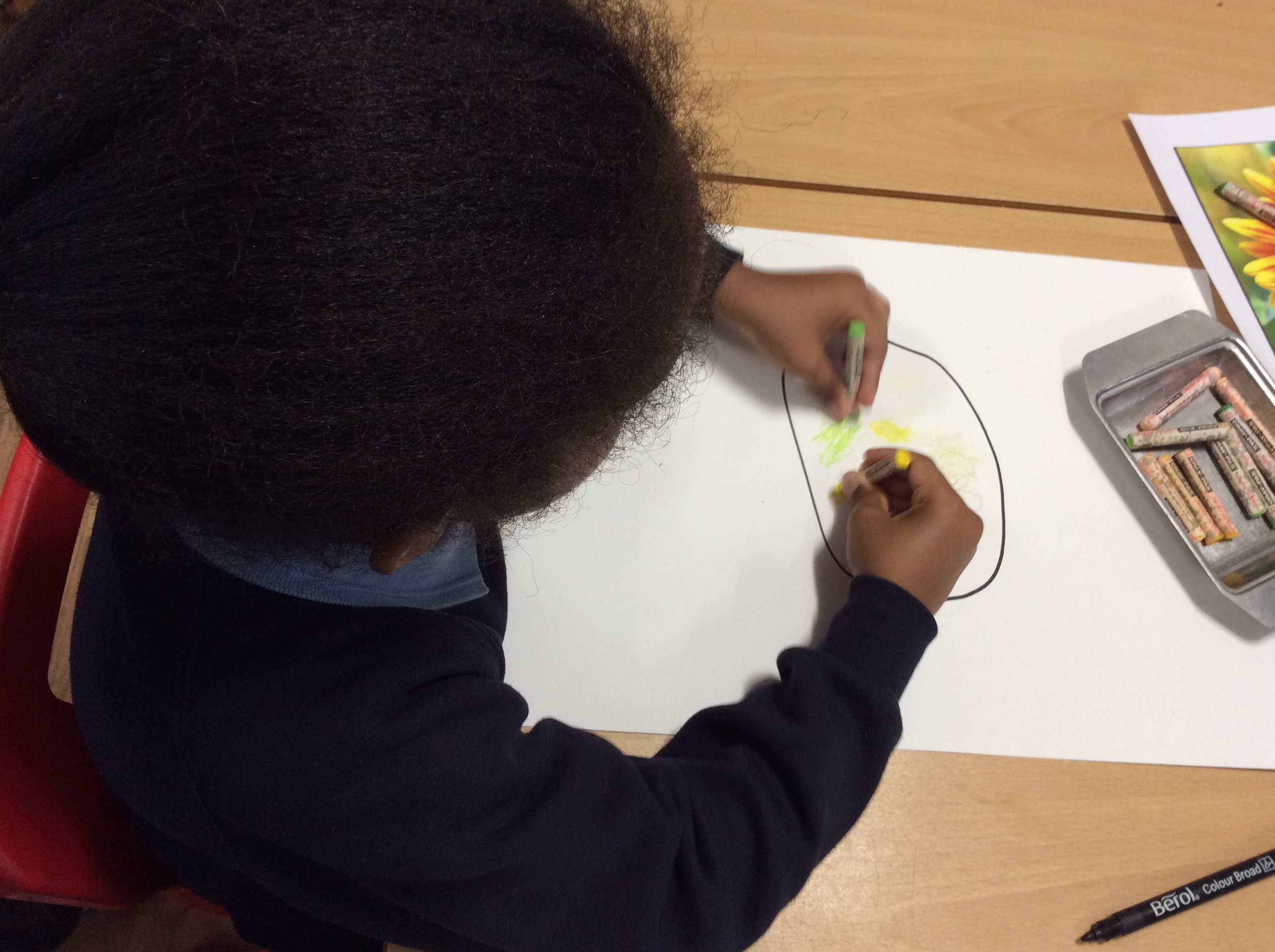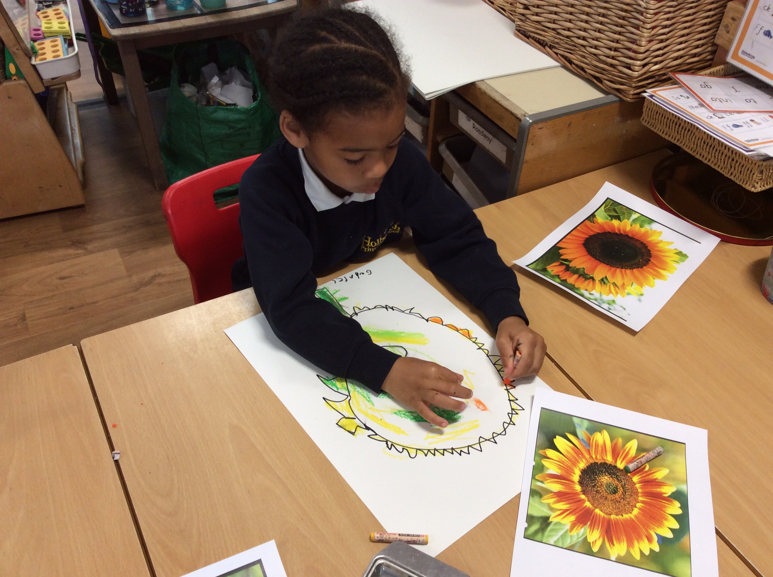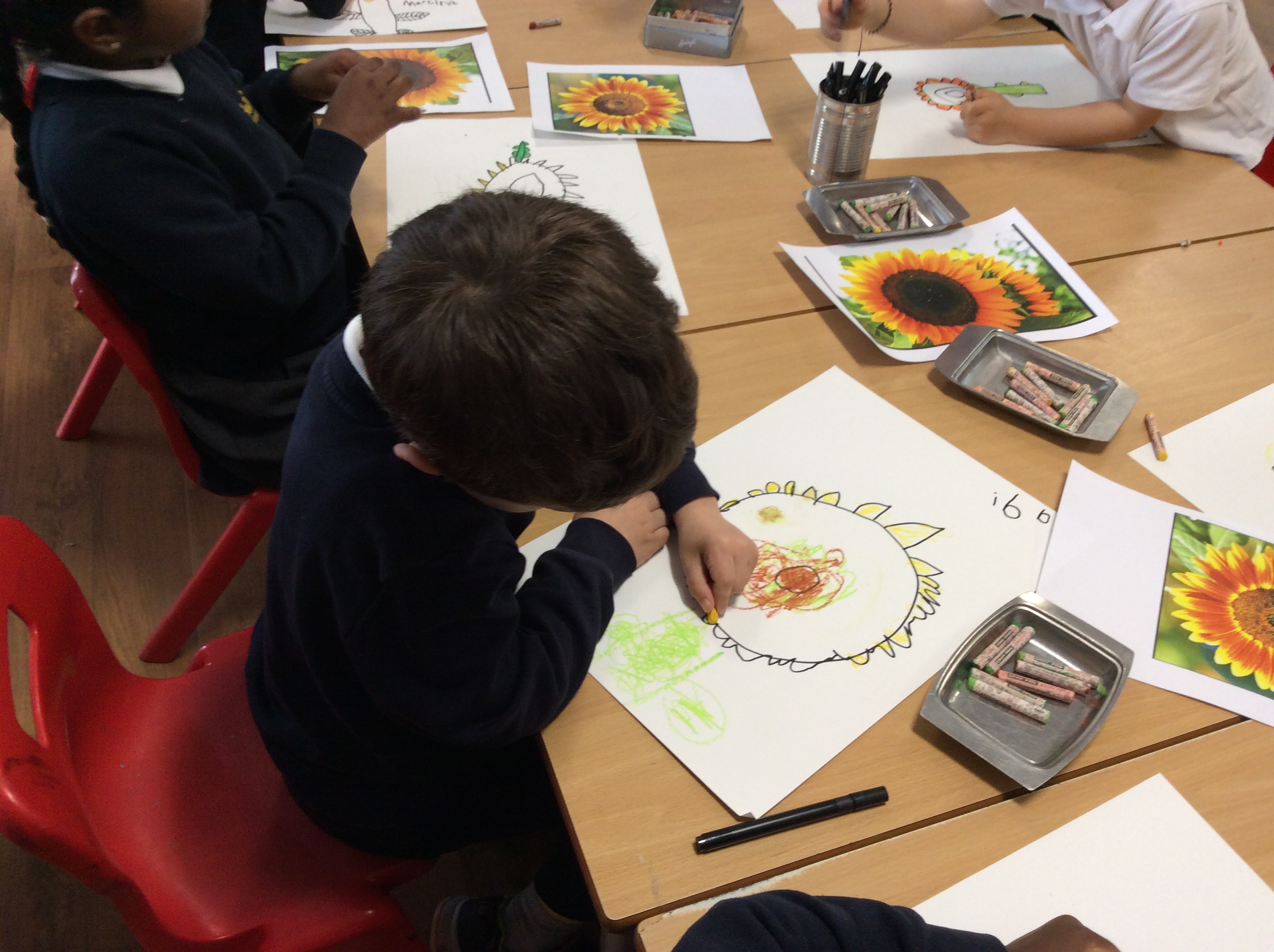 After looking closely at pictures of sunflowers we used pastels to create our own.