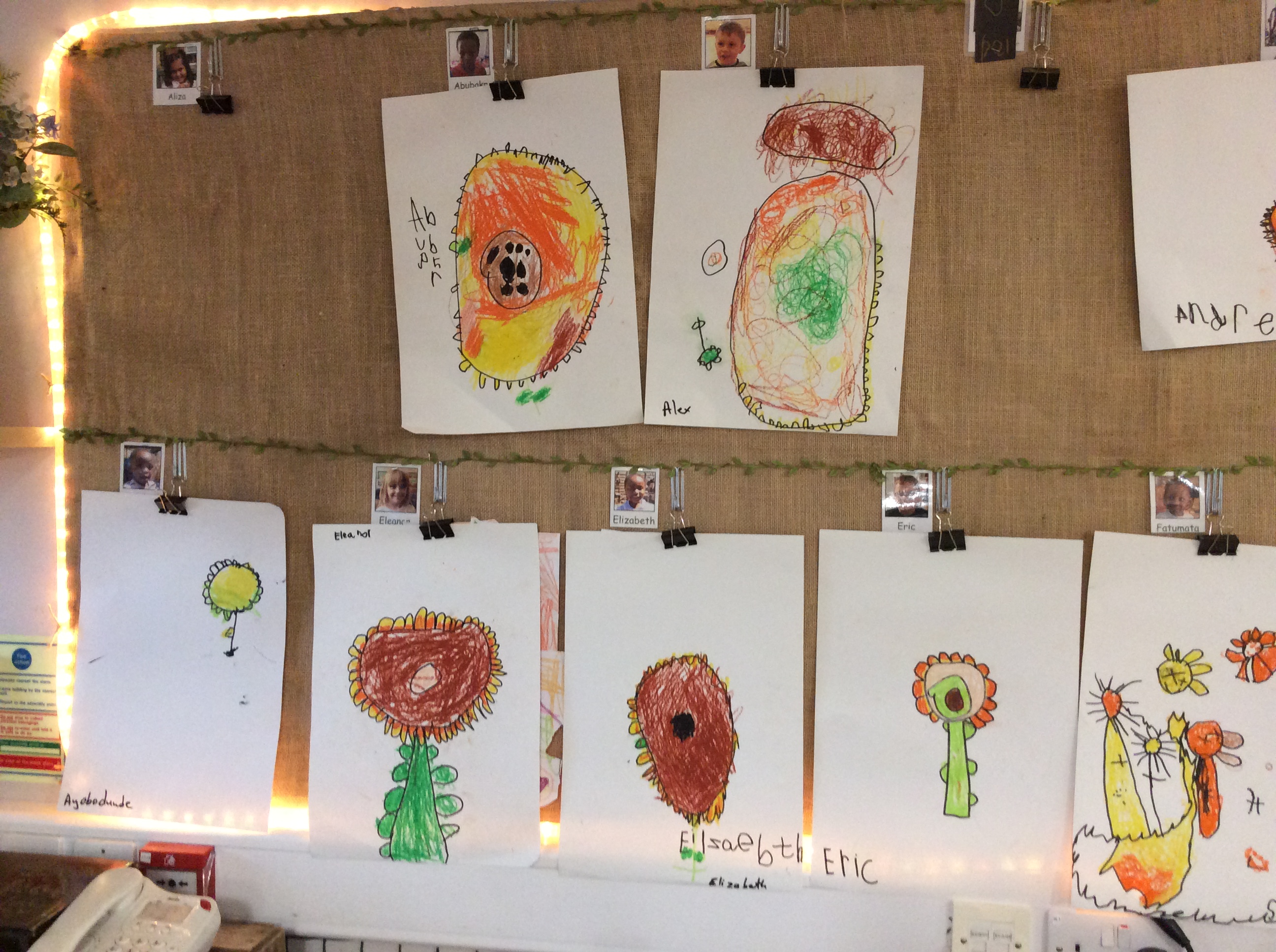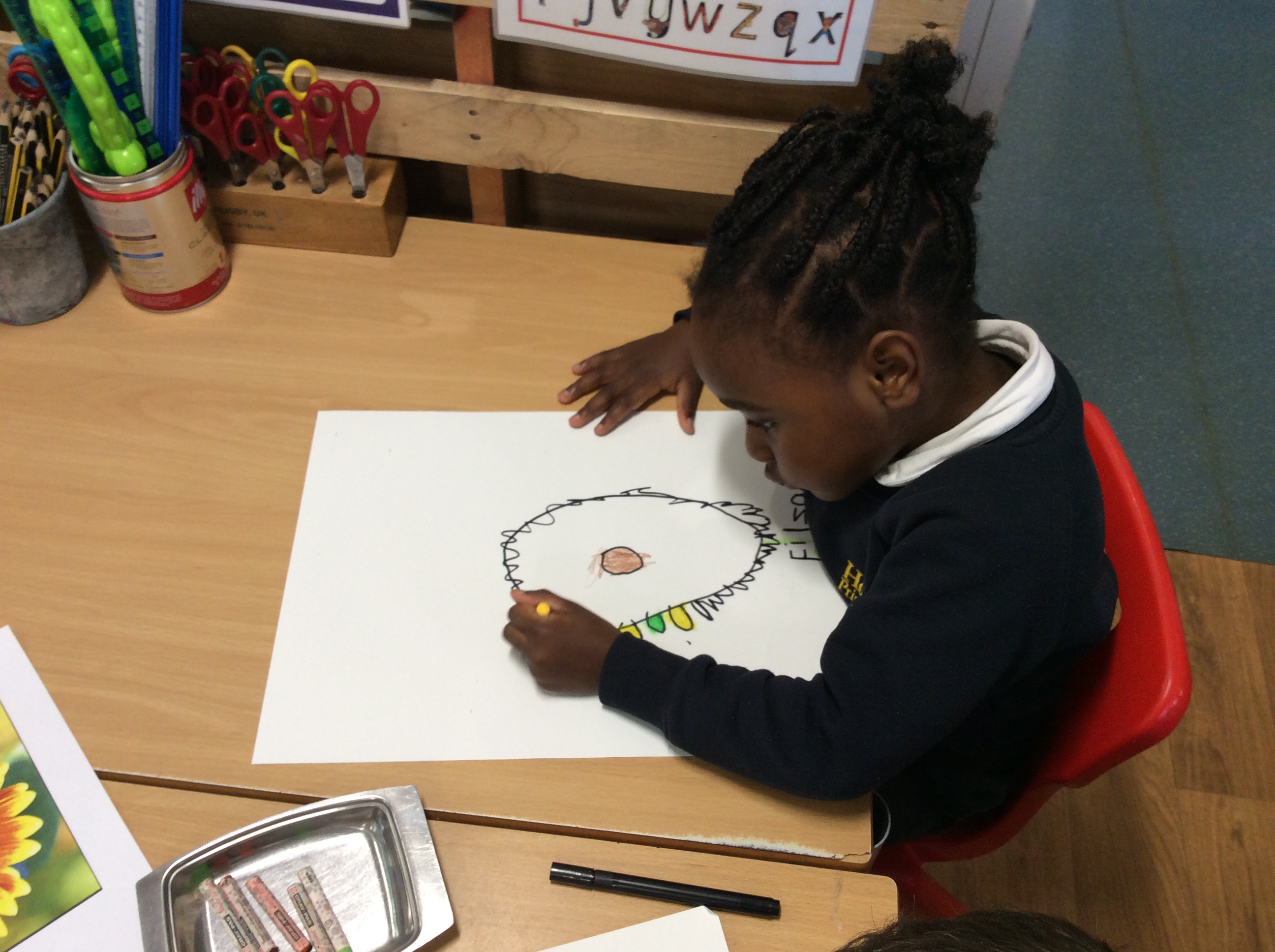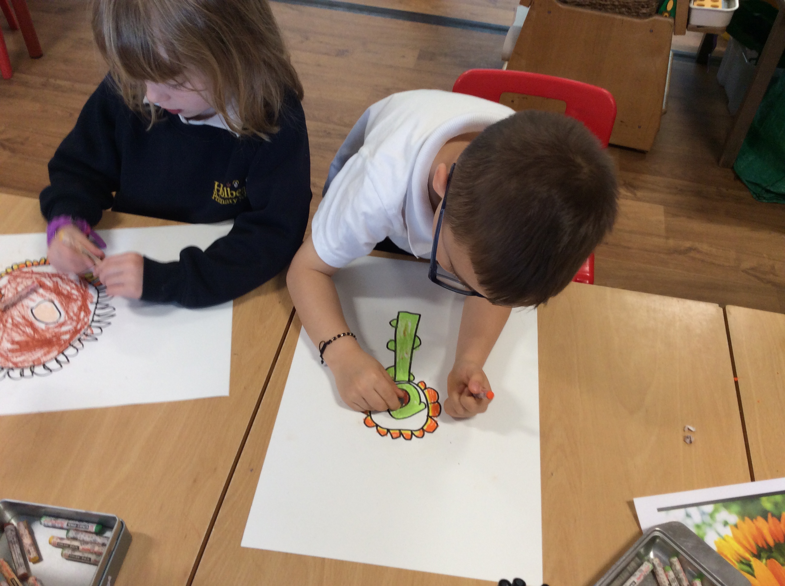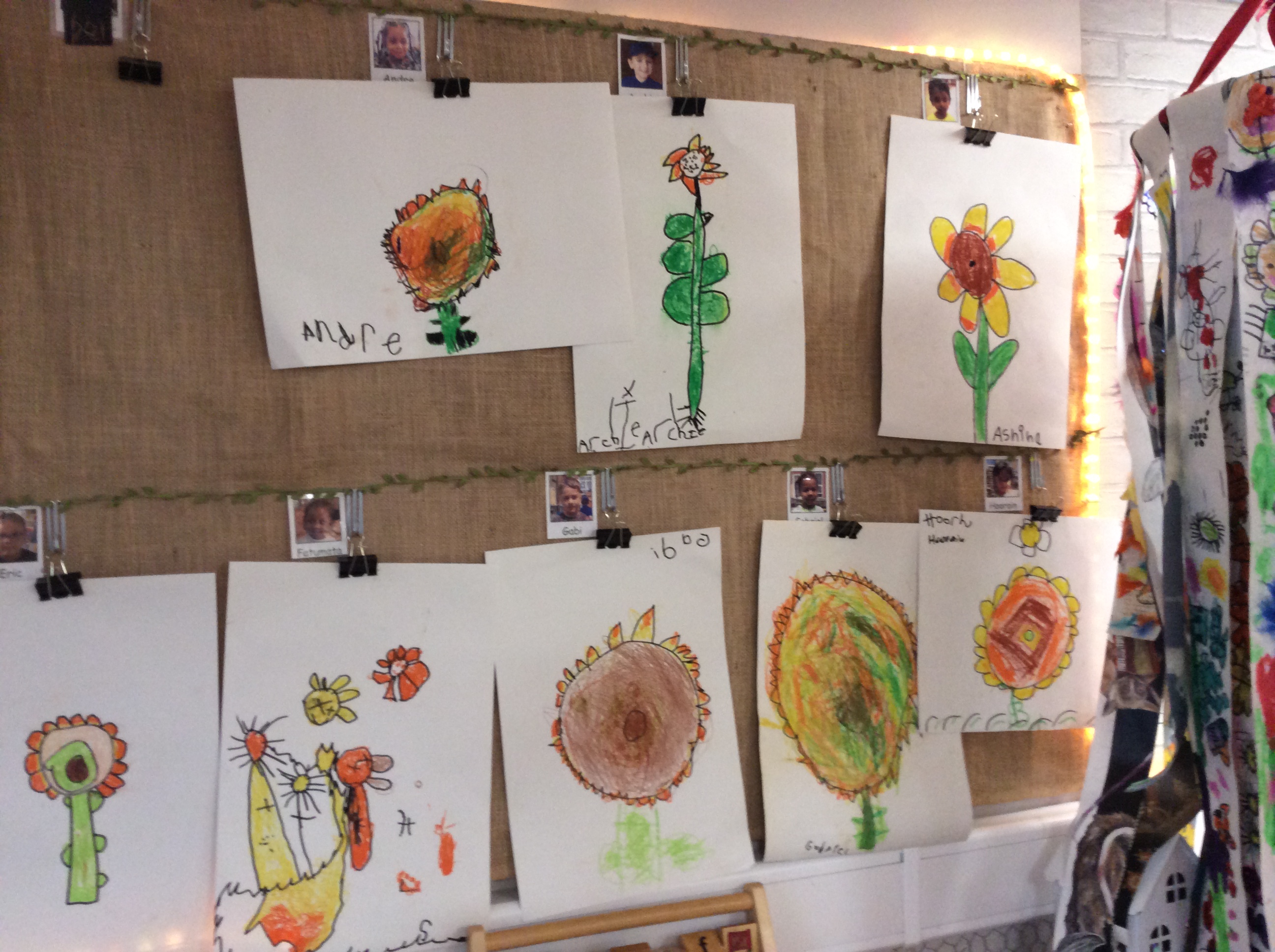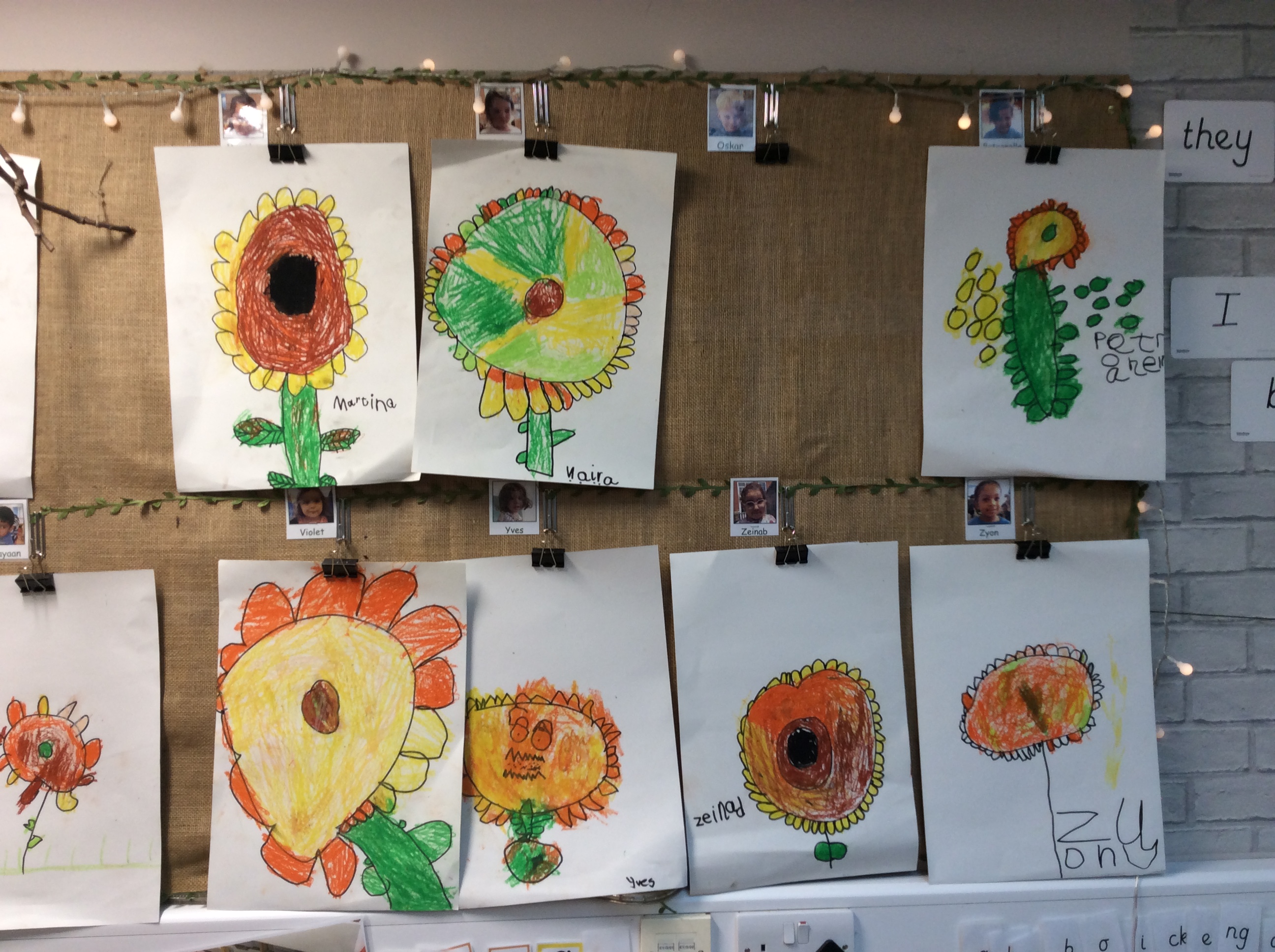 After looking closely at pictures of sunflowers we used pastels to create our own.