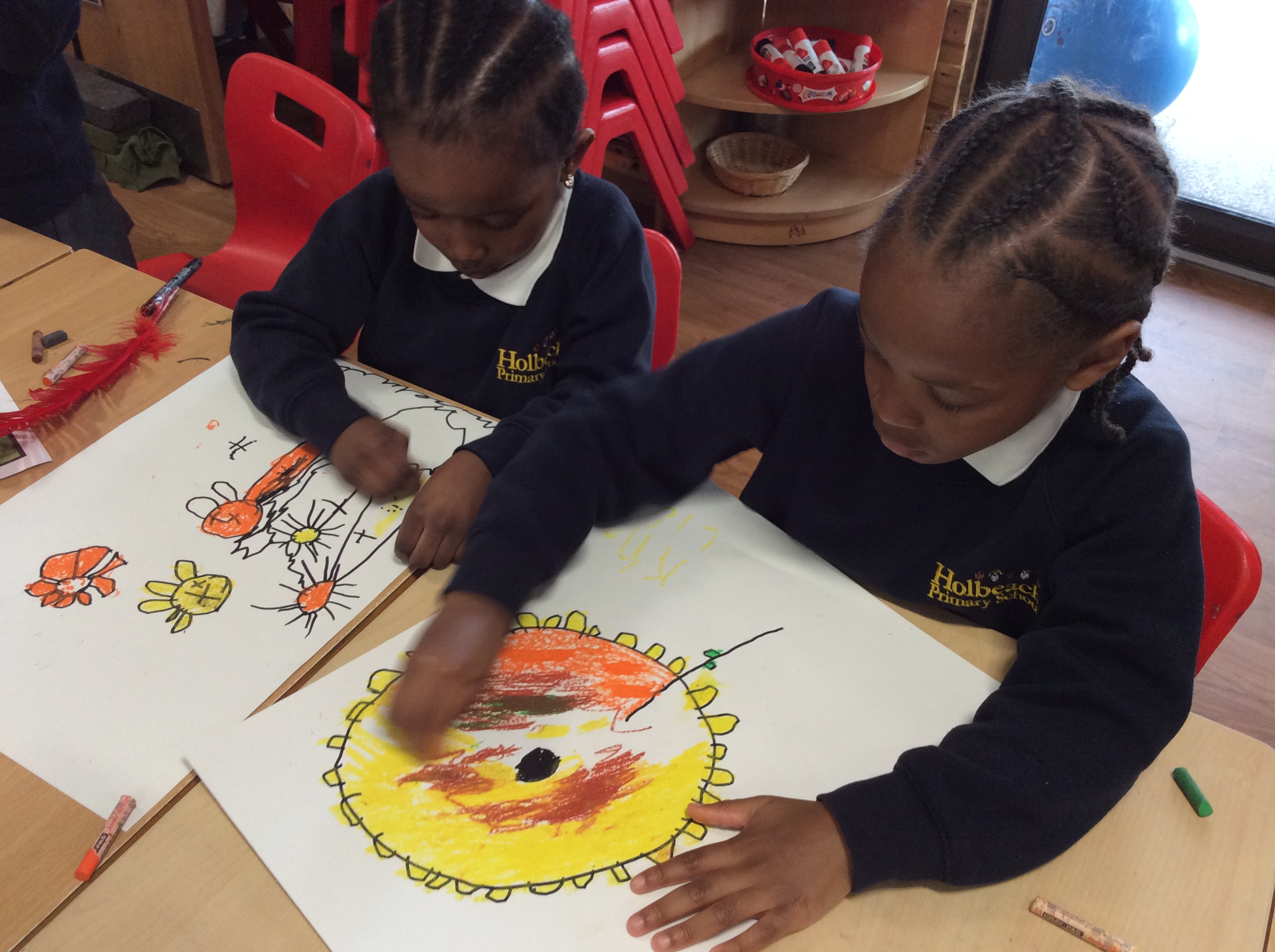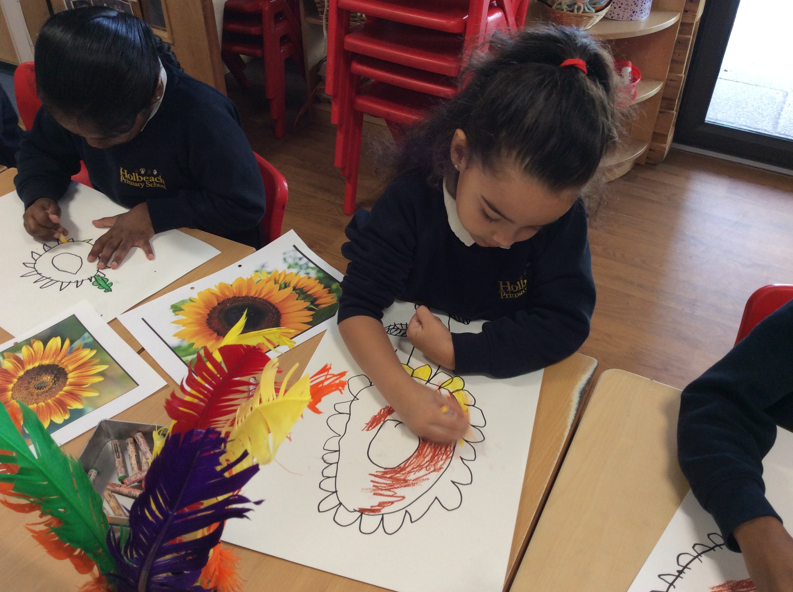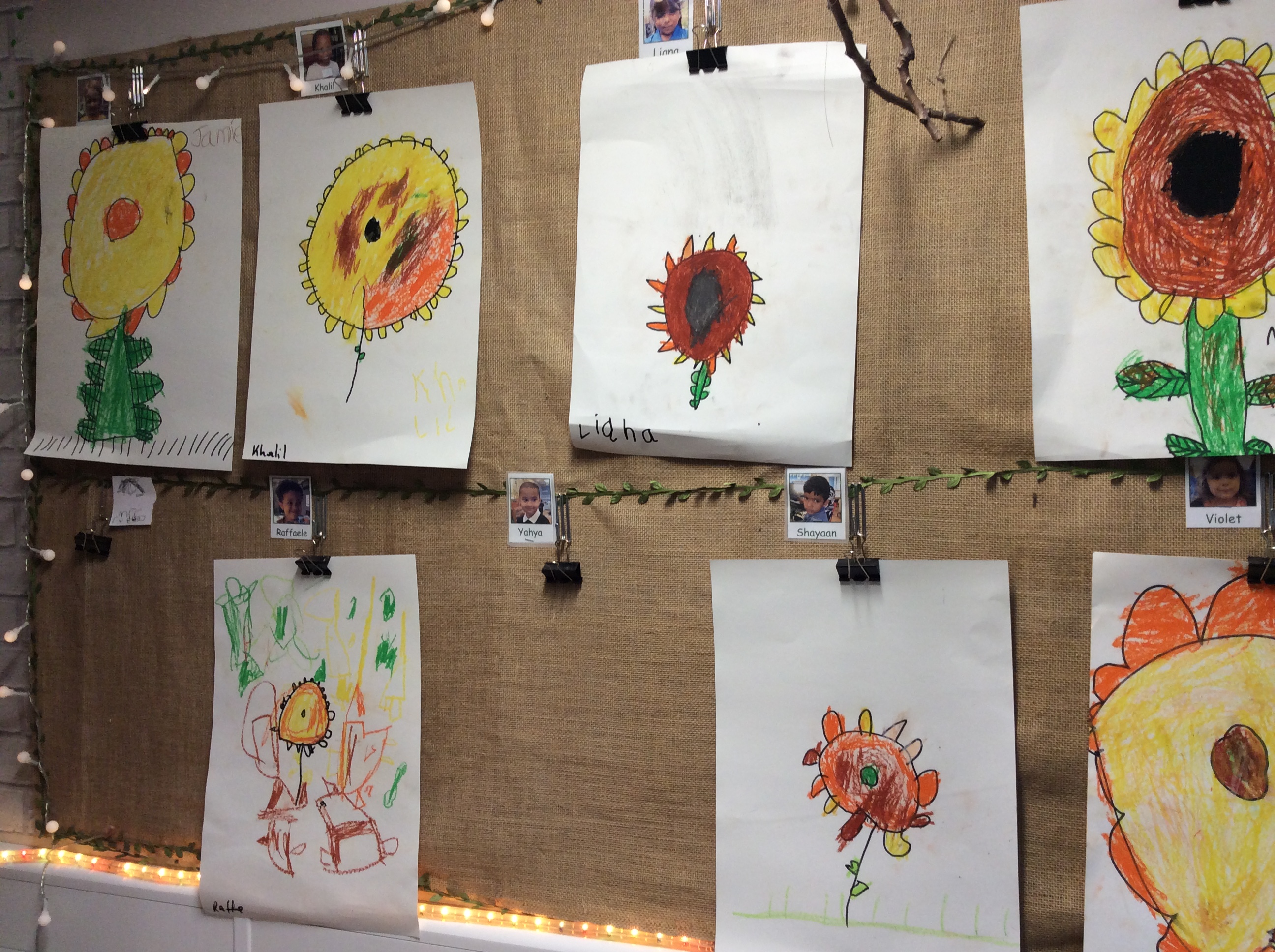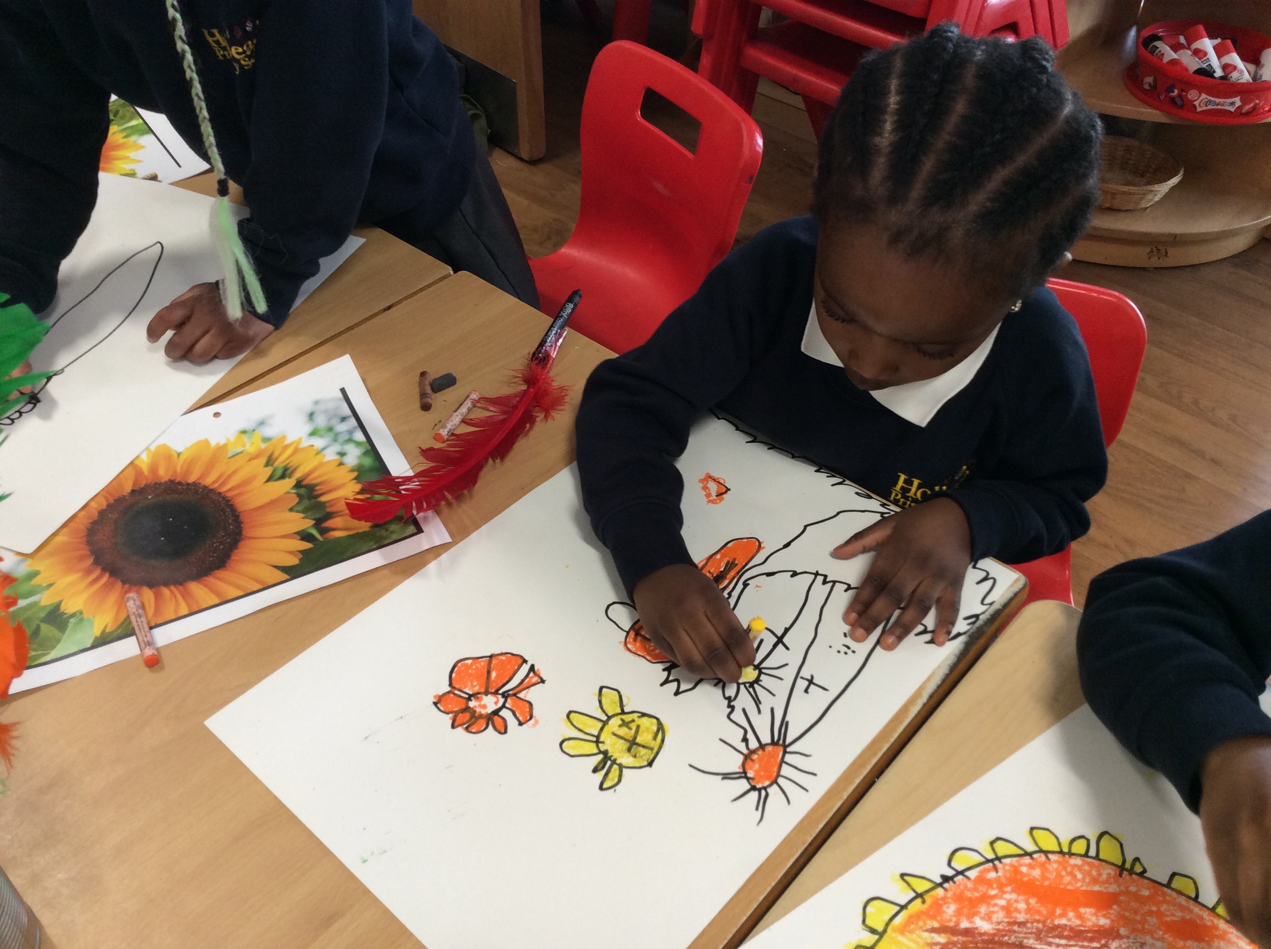 After looking closely at pictures of sunflowers we used pastels to create our own.