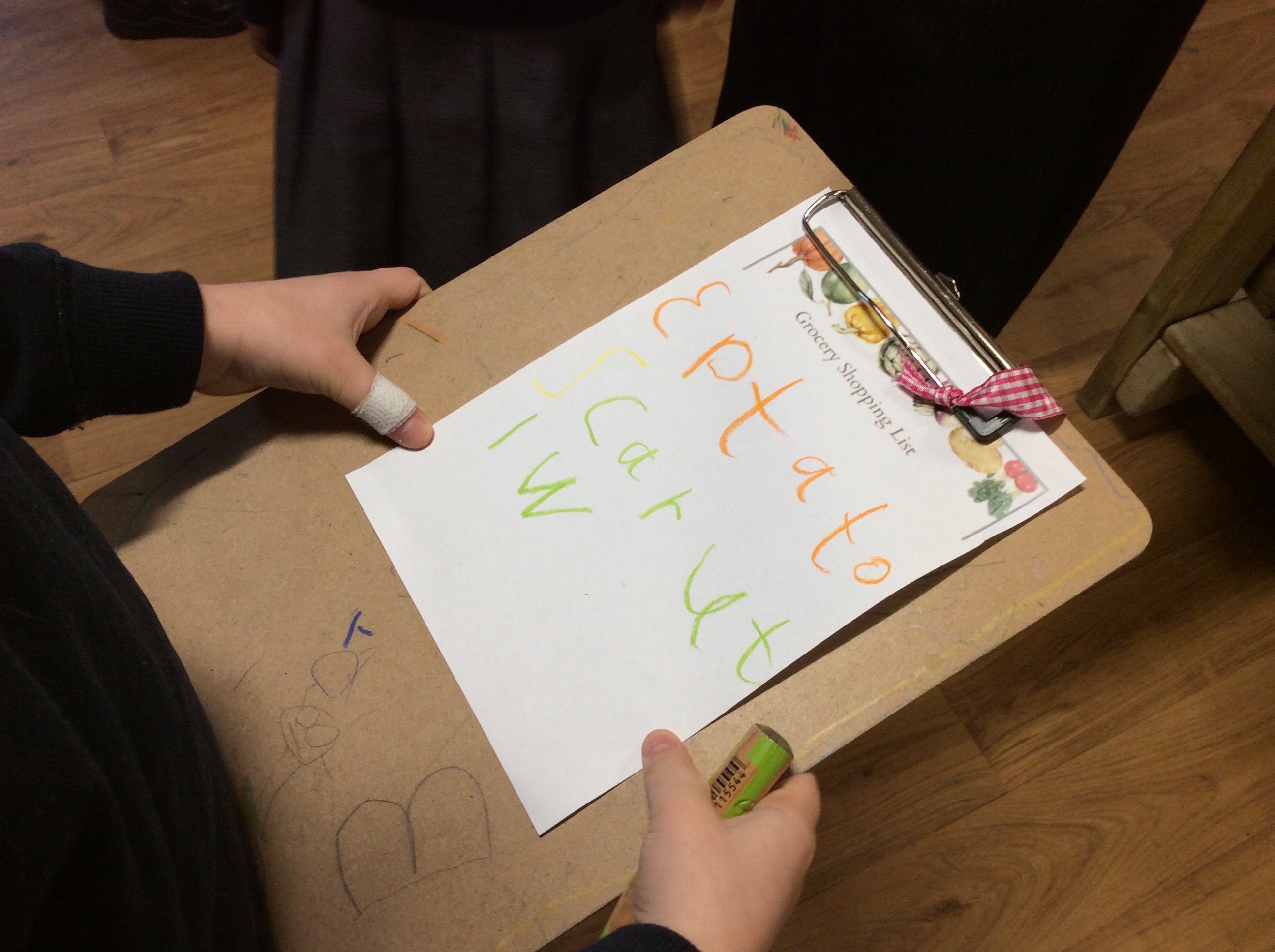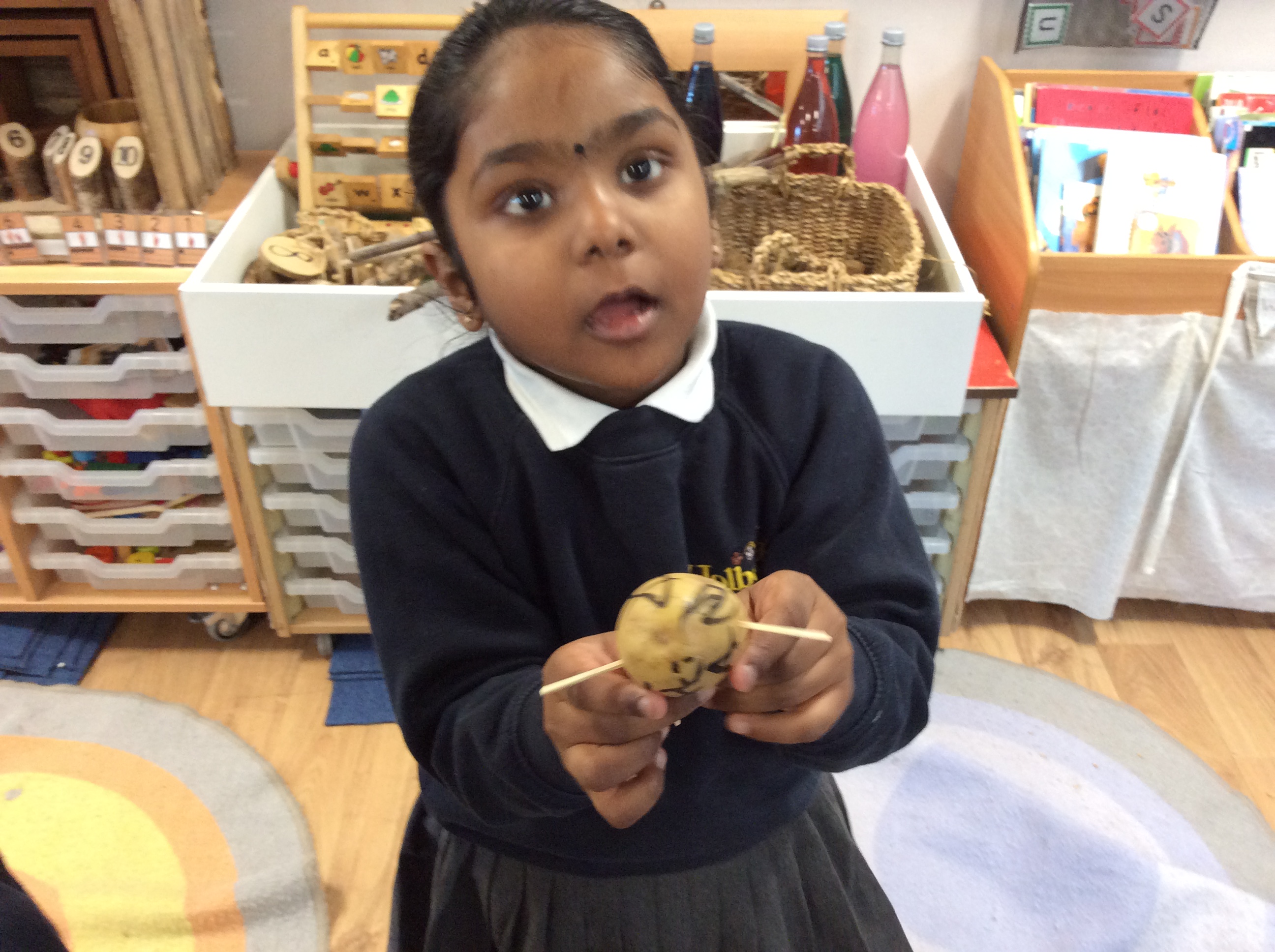 On Wednesday, the Evil Pea had trapped some carrots in a box and left us a note! We found more clues and began to make traps to catch him. We made our own 'Supertatoes' to help.