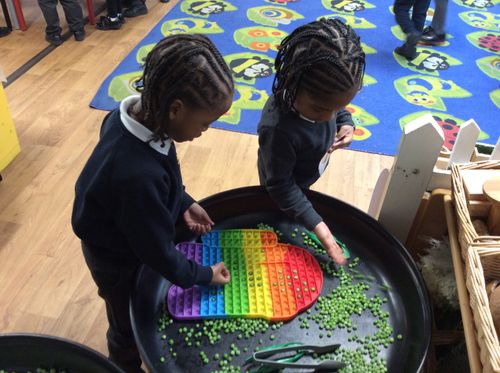 On Tuesday, we saw some of our carrots had been tied up! Who has done this?? We read 'Supertato' by Sue Hendra and Paul Linnet and pretended that the Evil Pea from the story had been in our classroom! We looked for clues and found tiny green footprints. We began to plan what we could do to stop him.