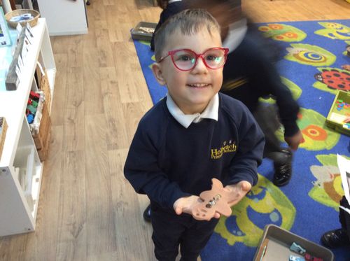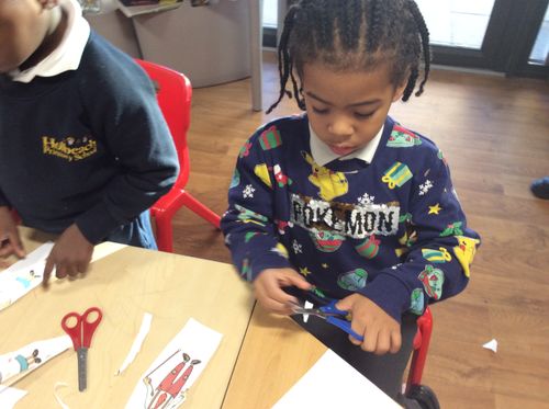 We practised our scissor skills by making lolly stick puppets to retell the story of the Gingerbread Man. We drew and wrote our own versions of the story, made gingerbread men with playdough and built bridges to help the Gingerbread Man cross the river. The children predicted what might happen if the Gingerbread Man fell in the water and then we watched to see what would really happen. They were right! He got soggy and then fell apart!