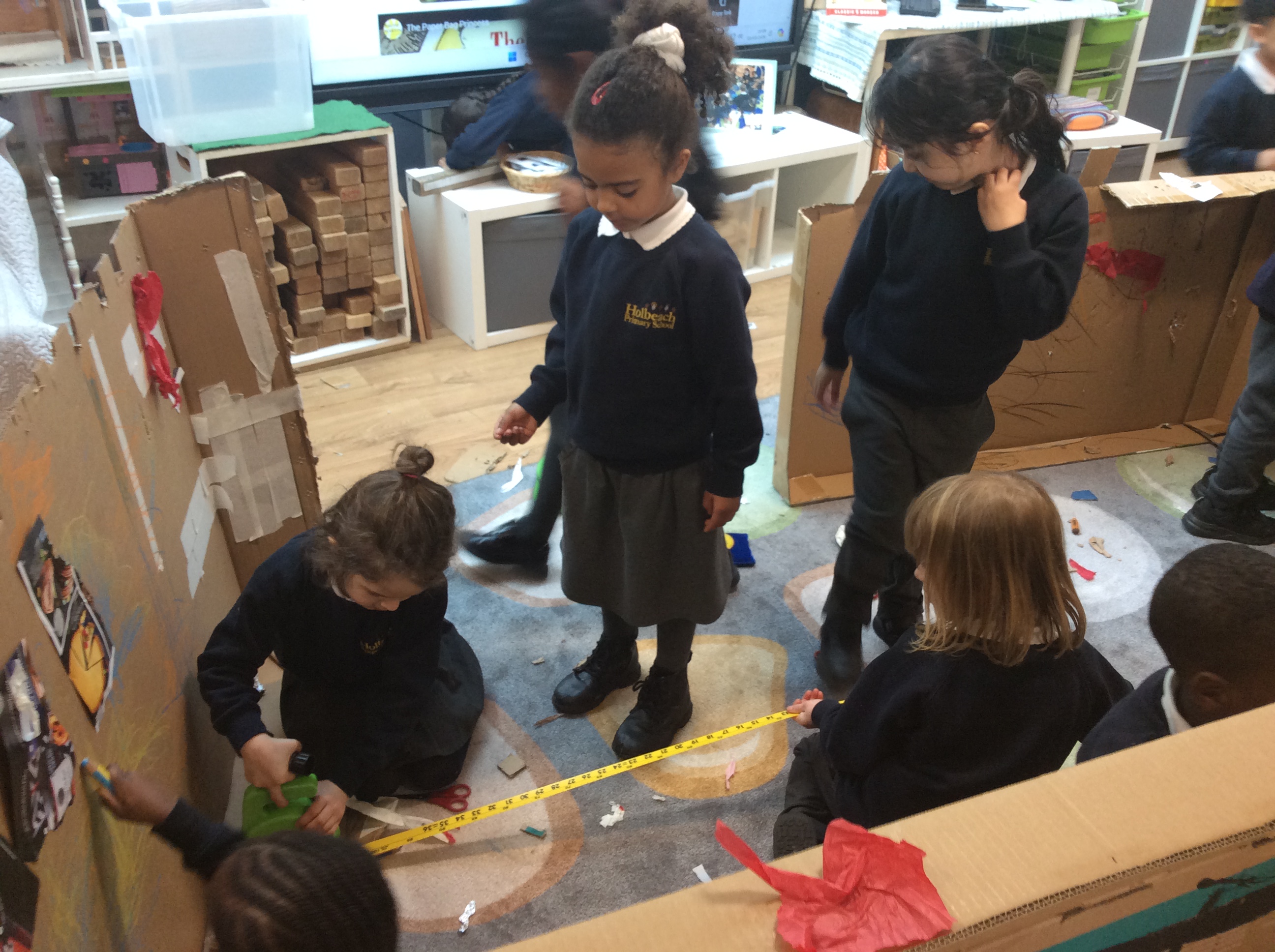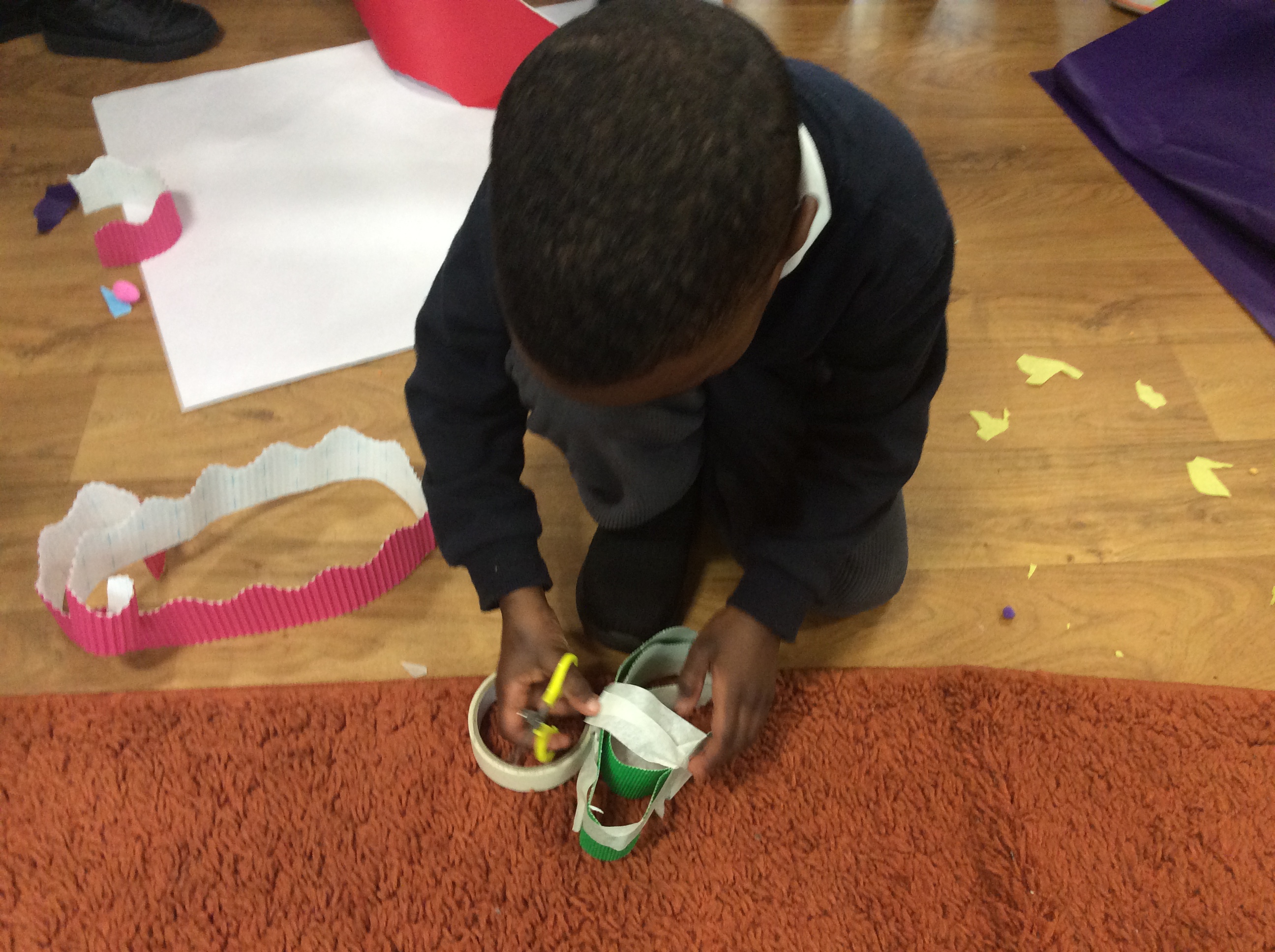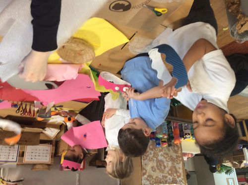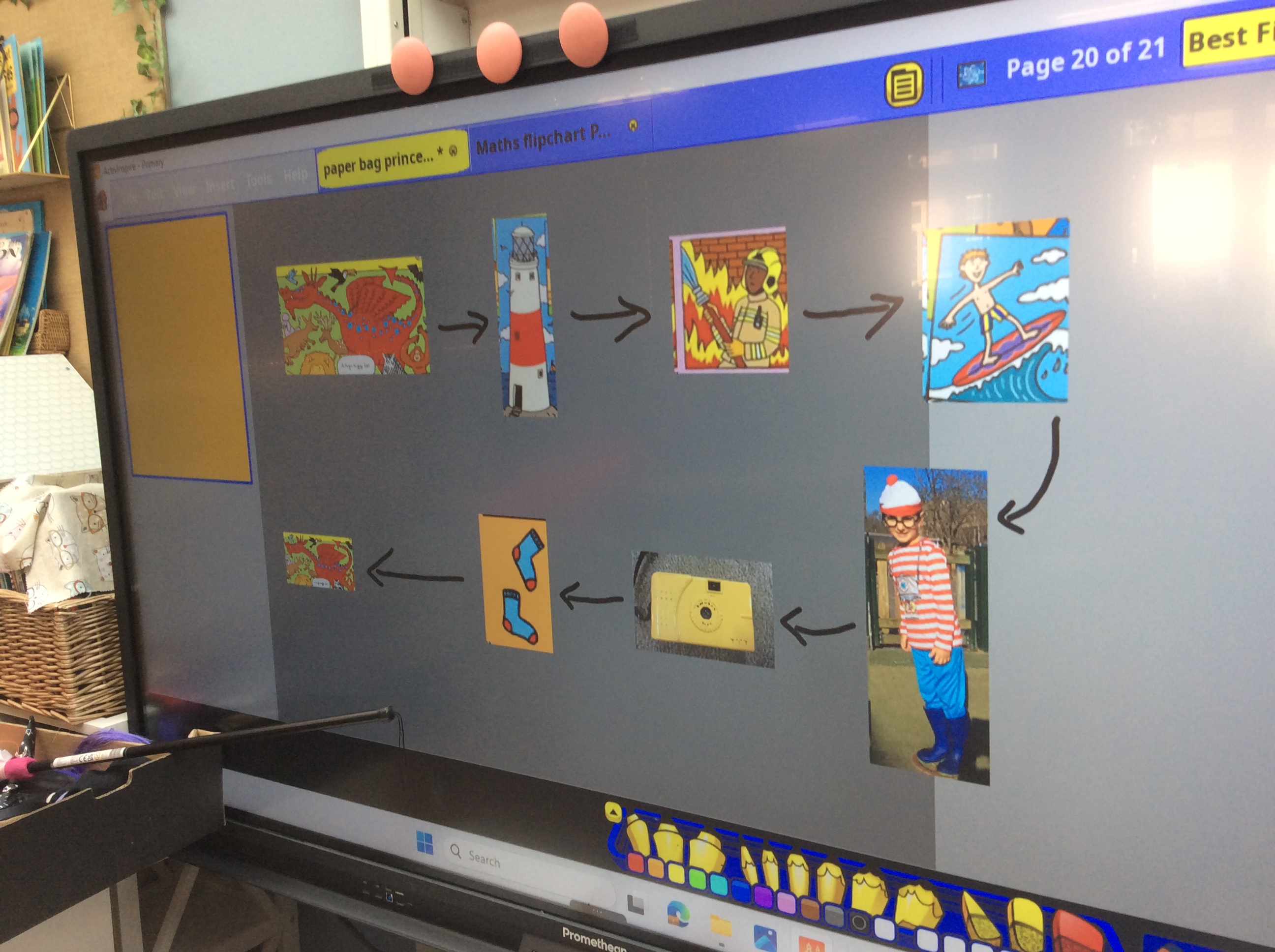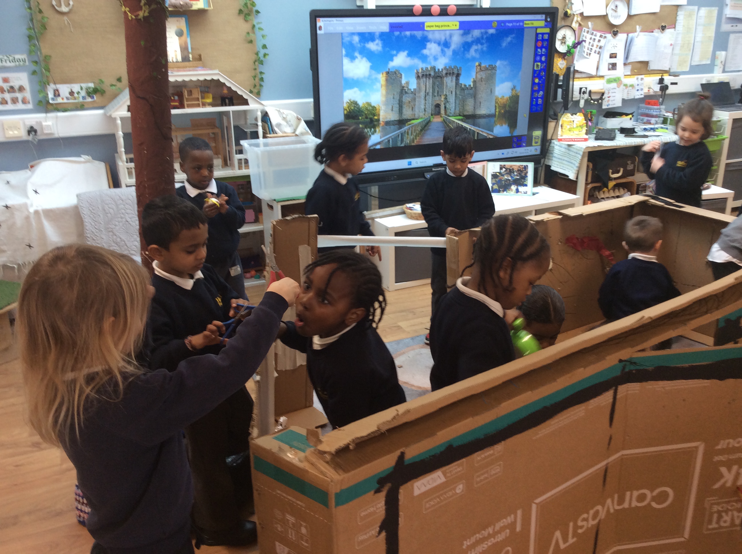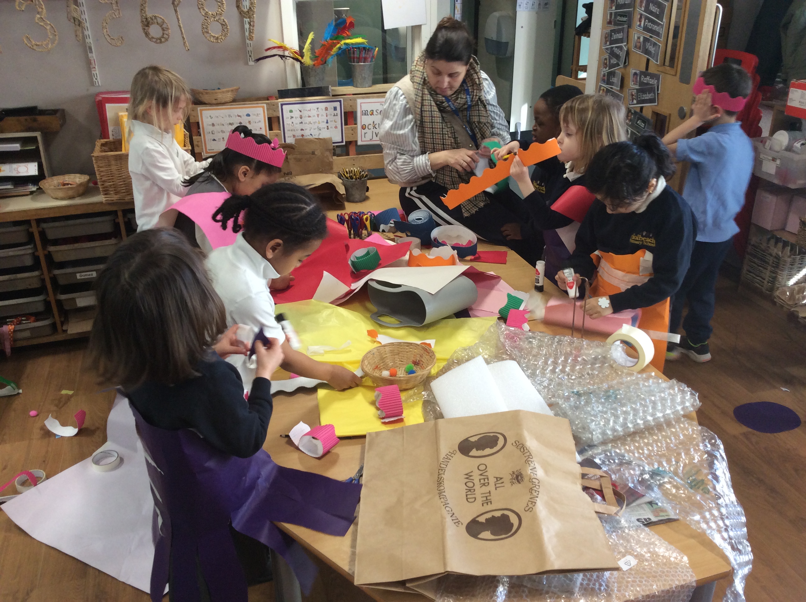 Pebble Class read 'The Paper Bag Princess' by Robert Munsch and explored a world where fire breathing dragons burn clothes and castles. We were inspired to make our own paper clothes and build a castle we could play and act out stories in!