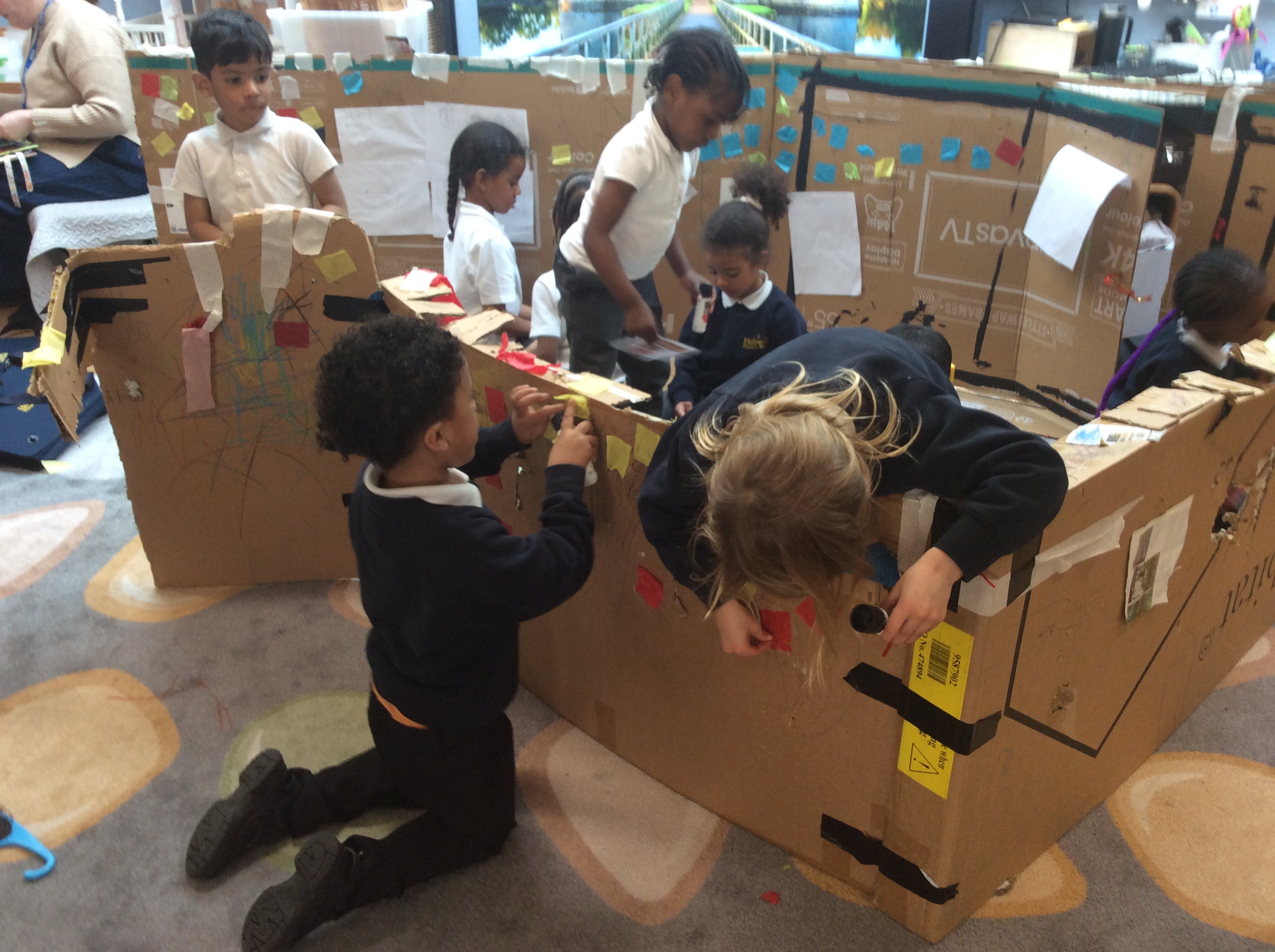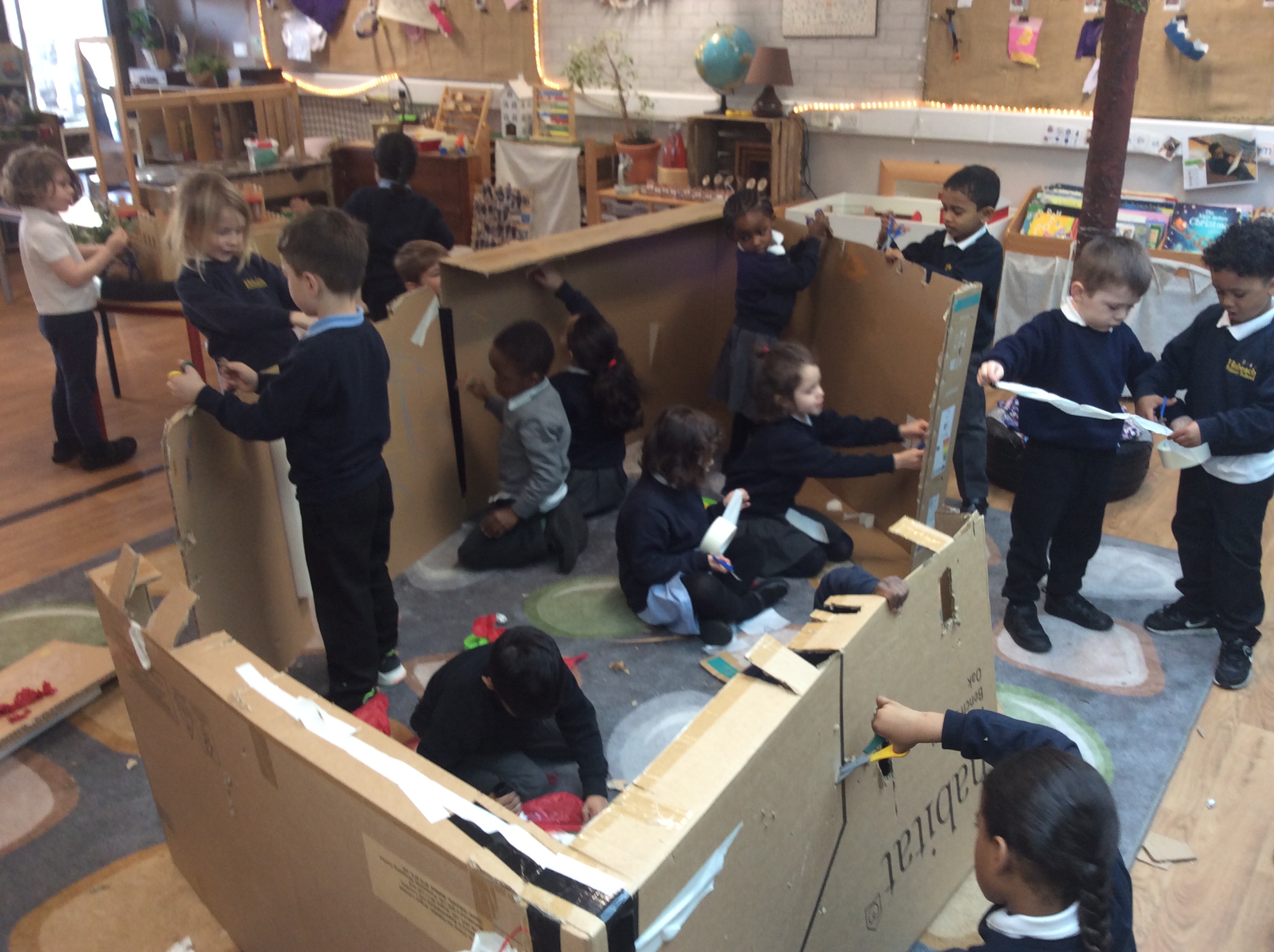 The children were such a team as they worked together building and decorating our huge cardboard box castle and helped each other design and make clothes for themselves.