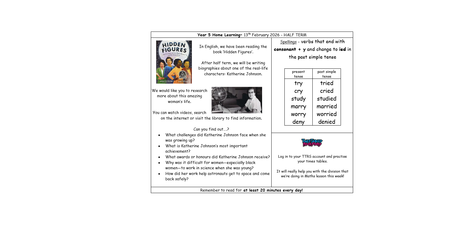 Year 5 Home Learning - Half Term